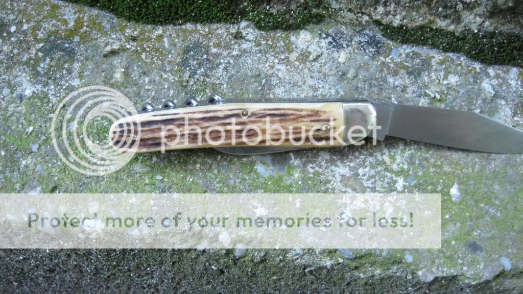 Here is what you can get... A Hubertus Jackknife with Stag Covers and a corkscrew. The secondary blade is weak at the spring but it will be an easy fix for you guys. I really like the stag on that one very much. And I´m sure, it will get a great home somewhere all over the world. (I´ll ship to every place, for sure