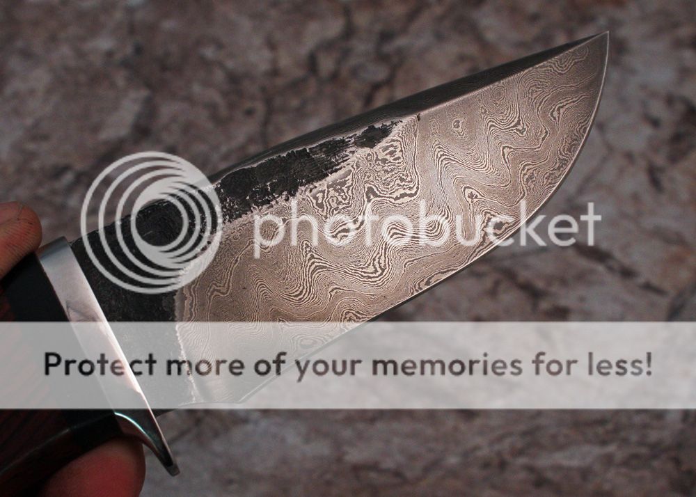 Here it is, the blade is 366 layers of 1095 and 15N20 damascus, made by me. It is forged from the billet into the knife. I hand polished it to 1000 grit before etching.