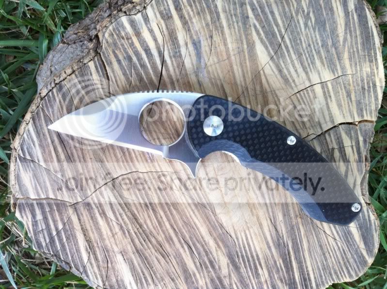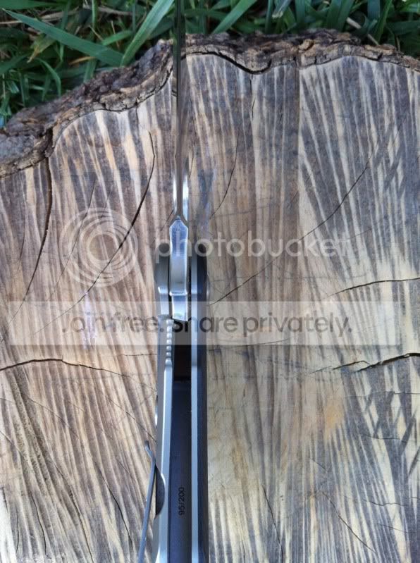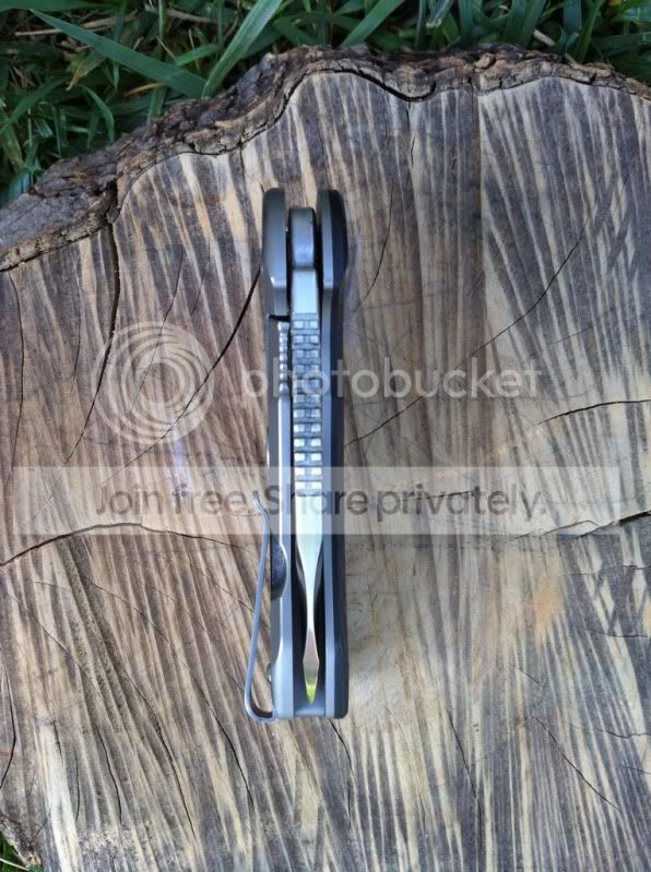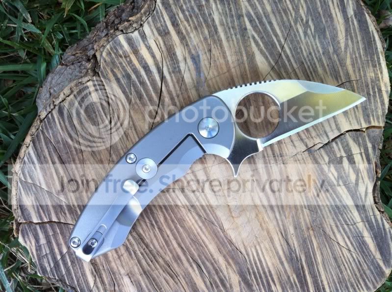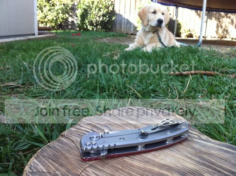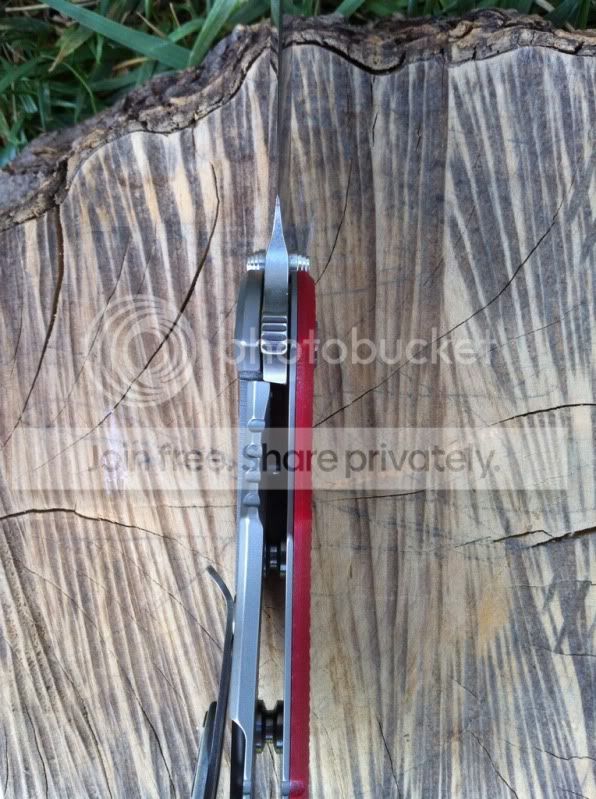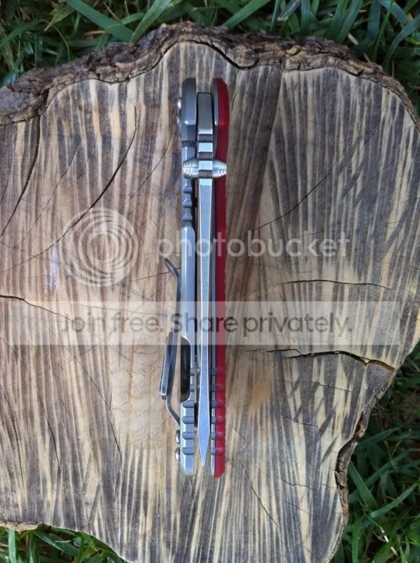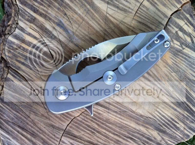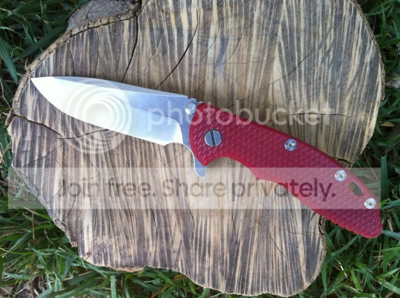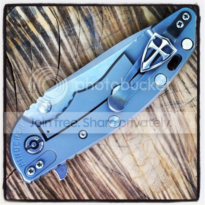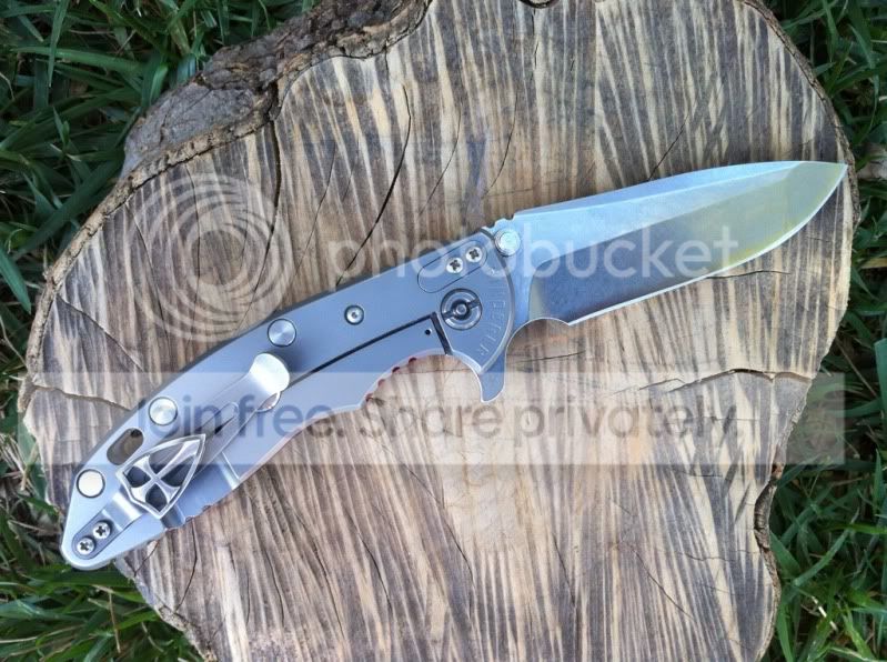 Up for sale are two very impressive knives. First up is a 3rd generation Hinderer 3.5" XM-18 spanto flipper with stonewashed Duratech 20CV steel and bead blasted Titanium Lock side. This knife has a very nice cranberry red scale. The deep red of this scale looks great next to the bead blast titanium lock side. This knife also comes with a Steel Flame Crusader Cross Clip. These clips sell for $180 new when they are available on Hinderers site. For those of you worried about scratching up th bead blast finish...don’t be. Hinderer makes knives with sandblast and bead blast finish. The sand blast finish easily scratches and shows marks, but the bead blast holds up really well. I have carried this knife a number of times and the finish has shown very little wear. This finish hold up very well. Having the blade stonewashed and the lockside bead blasted makes an outstanding combo. I have opened a few boxes with this knife and have lightly touched the edge up on the sharpmaker. The blade is in outstanding condition. The lock up is rock solid with no blade play in any direction. The flipping action is very smooth. Knife comes with box, baggie and peanuts. I am not interested in selling the clip separately.