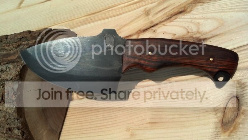 So this is my third knife, out of the original 15 that I cut profiled and sent out to heat treat. I've been slammed at work with travel, so I haven't had any time to work on knives but I managed to eek this one out over the course of a couple weeks at night. The handle tapers towards the blade and then again towards the butt. I showed my friend who it's for and he wants to put it in his going away shadow box from work. Kinda disappointed it won't be getting actually used but happy he likes it enough to display it. Comments/ critiques welcome as always.