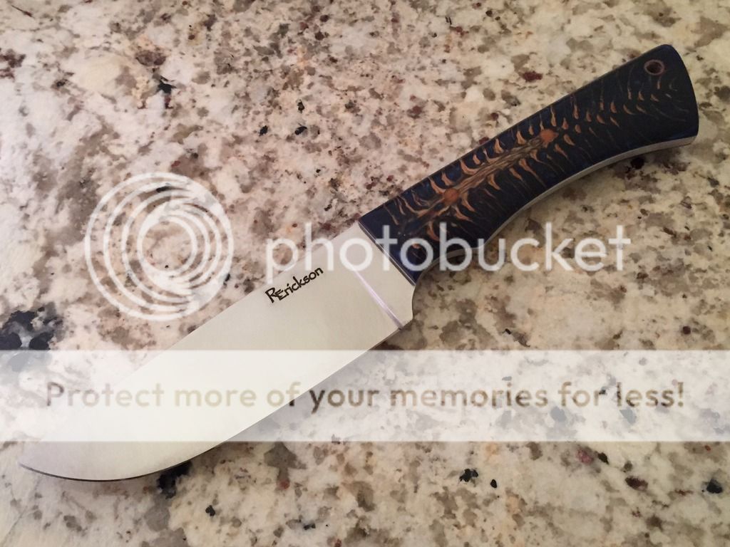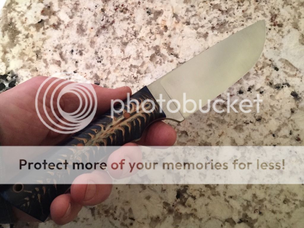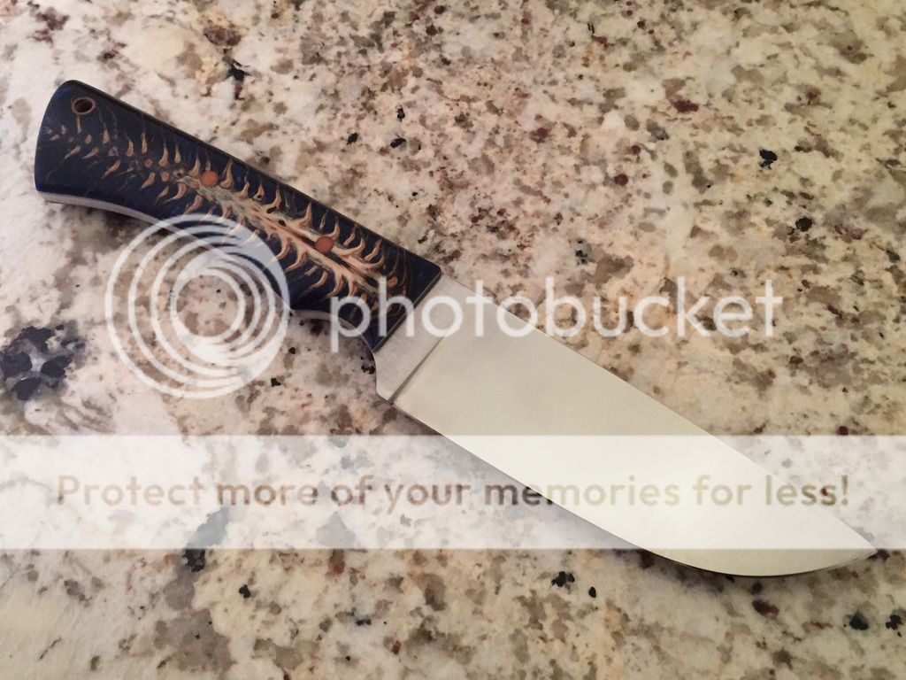 I've been playing around with Sketchup CAD and this is one of the profiles that I came up with. It's 5/32" 3V steel from Aldo that I put together with a resin cast pinecone. I've been waiting for the right knife to put it on and I think it pairs well with this profile. It comes with a hand tooled leather sheath.