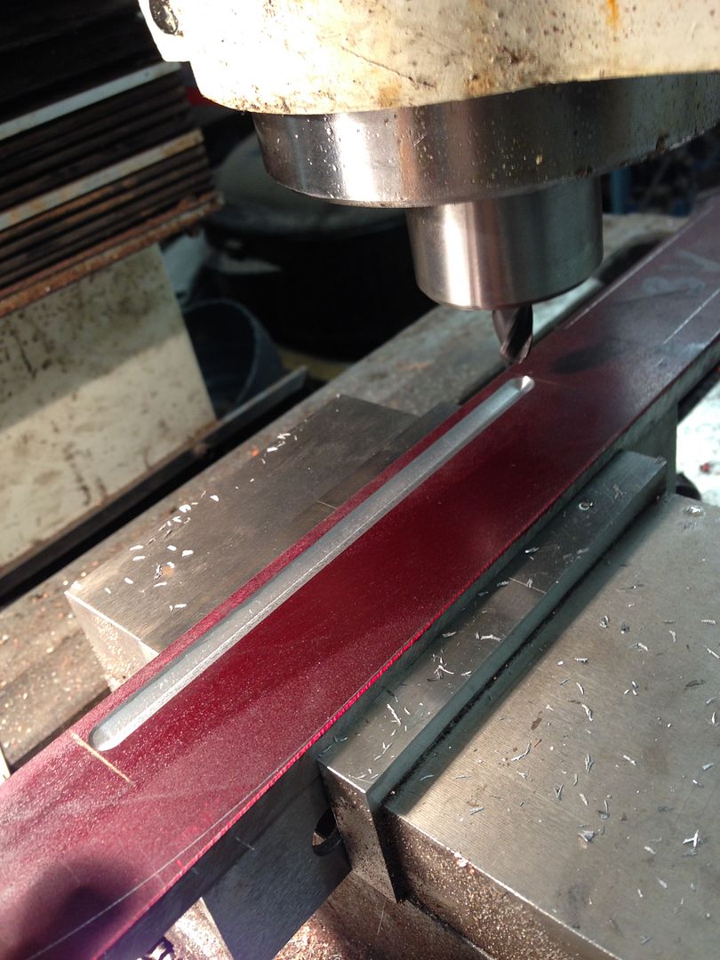 I like to mill in the fullers before I profile the blade. That makes it easier to keep everything lined up and square.