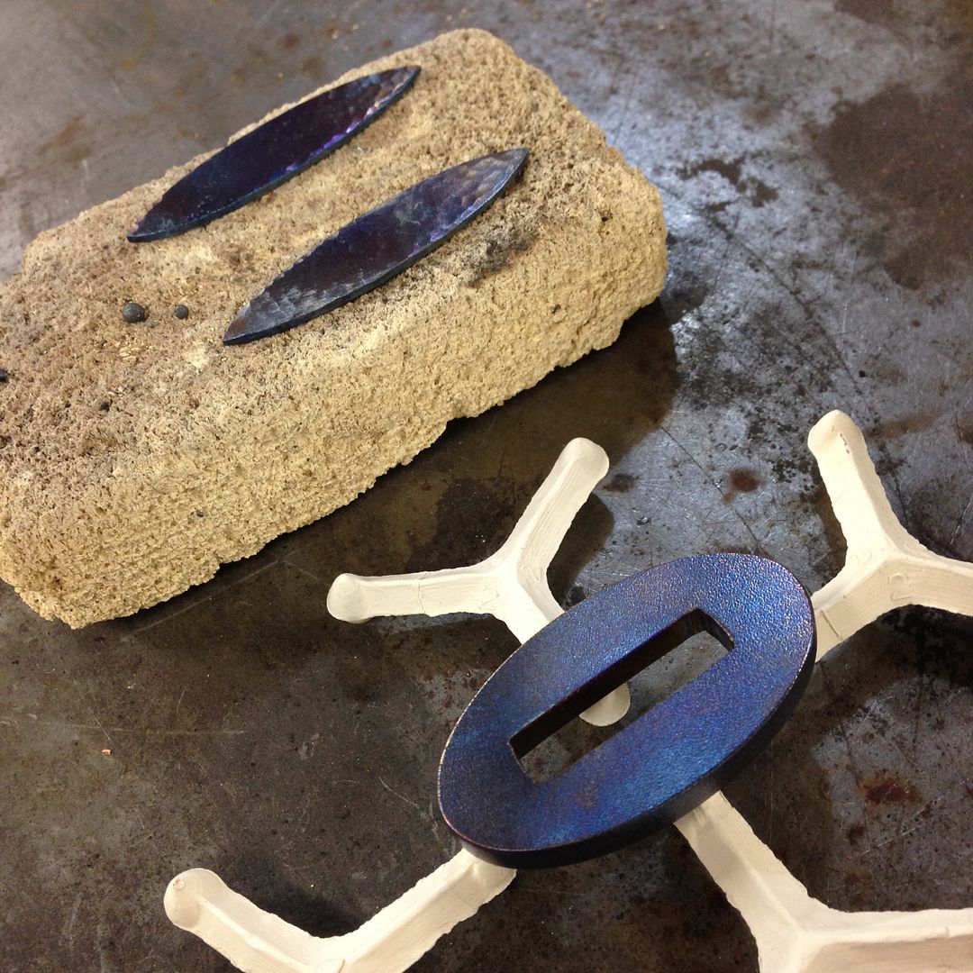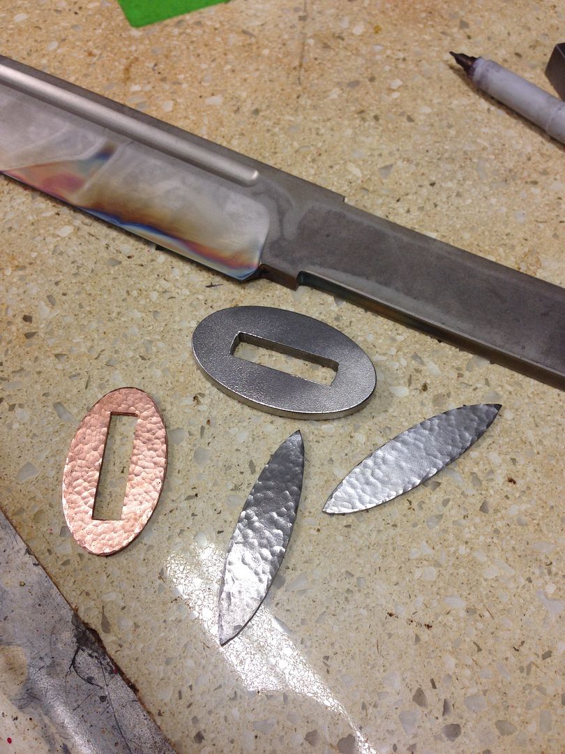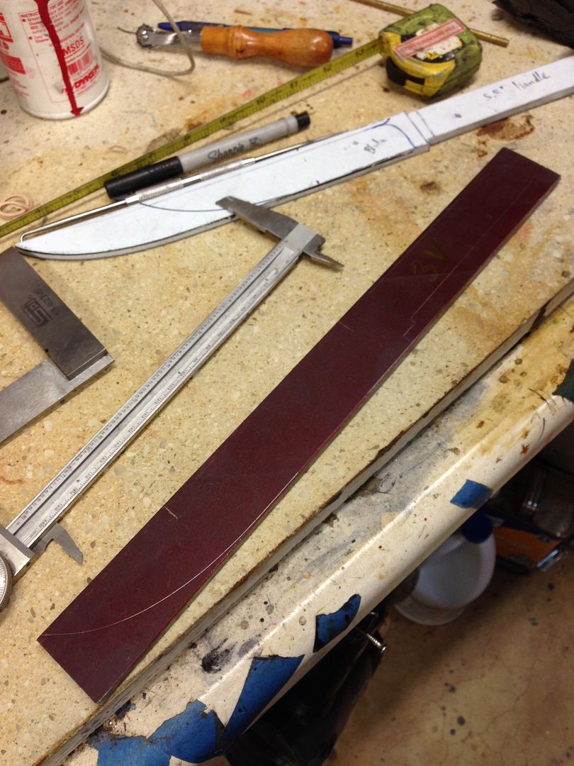 Laying out the guard while the blade heats up in the kiln. It will be 6al4v Titanium.
