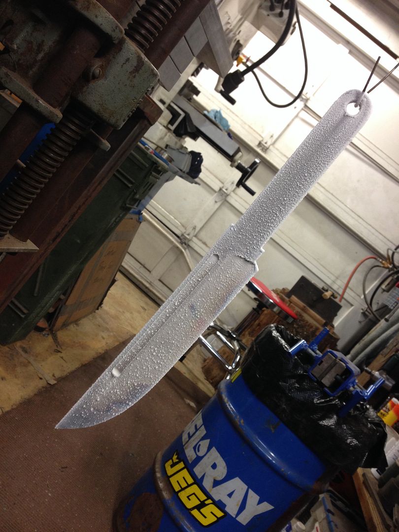 The hardening phase of HT was a success, it then received an immediate soak in LN. Nice and frosty. Next up temper cycles.