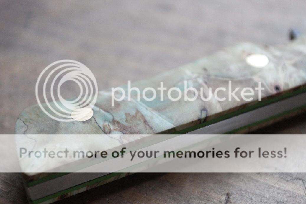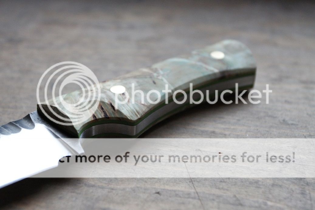 the green spalted maple has two small gaps (filled with epoxy) along the tang. for that reason its a $50.00 discount. it has been epoxied and peened so that is just cosmetic and wont effect the integrity.