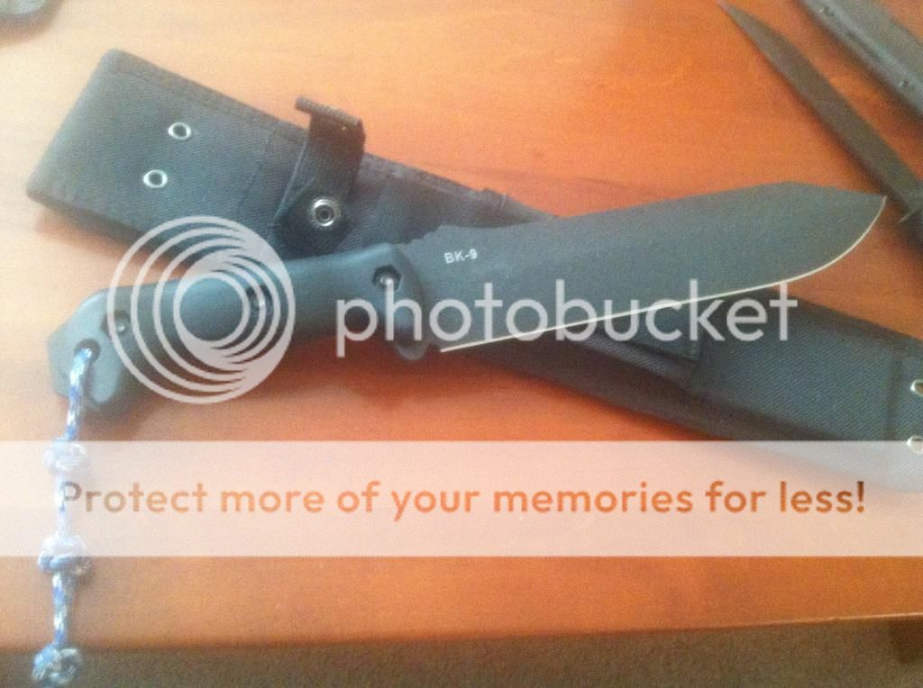 Then my BK9, there's some dust on it - not wear. I hate to see this thing go but I'm a city apartment dweller and I've never cut anything except some bacon up with it. I would love to keep it to go backpacking with it but truth be told I'm probably at least two or three hundred miles too far East to find anywhere where a knife like this would be acceptable even on a camping trip.