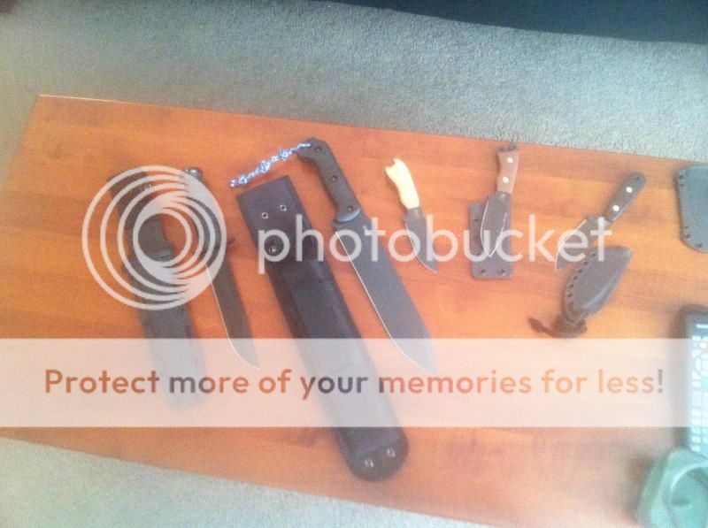UPDATE: The BK9, the BK11 with wooden handles, and the BK14 have all been sold. Still remaining are the more worn BK11 and the Kabar.