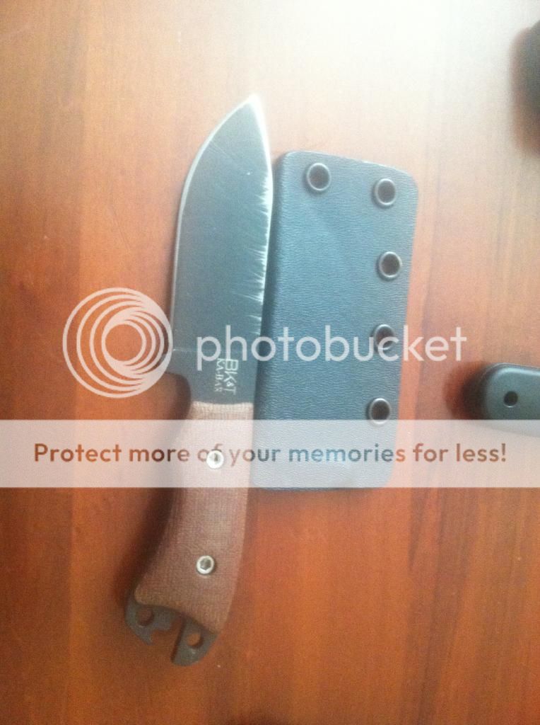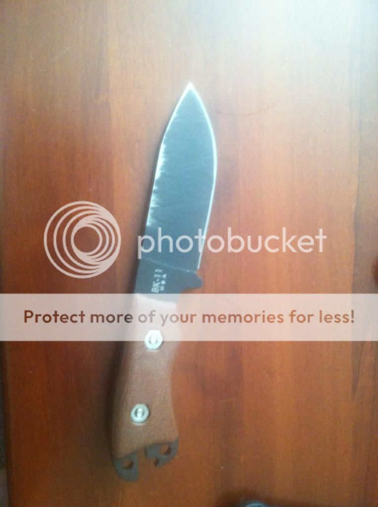 This is a work horse...a really impressive knife. I'll miss it but hopefully whoever buys it will give it a good home. Comes with the sheath, the sheath has a built in BK13 sheath in the front pocket but didn't come with a BK13. This knife has never cut anything except bacon, and only once at that, and is in brand new condition. SOLD.