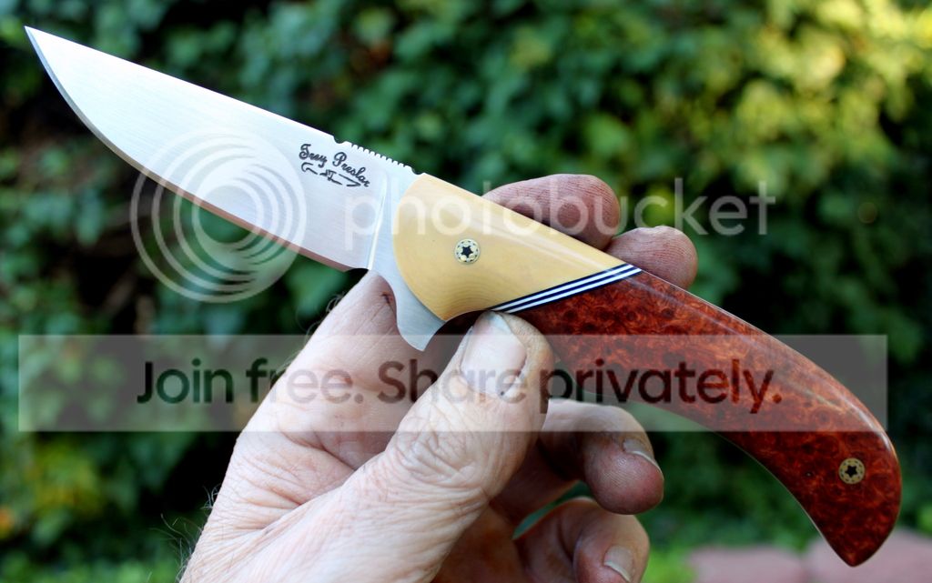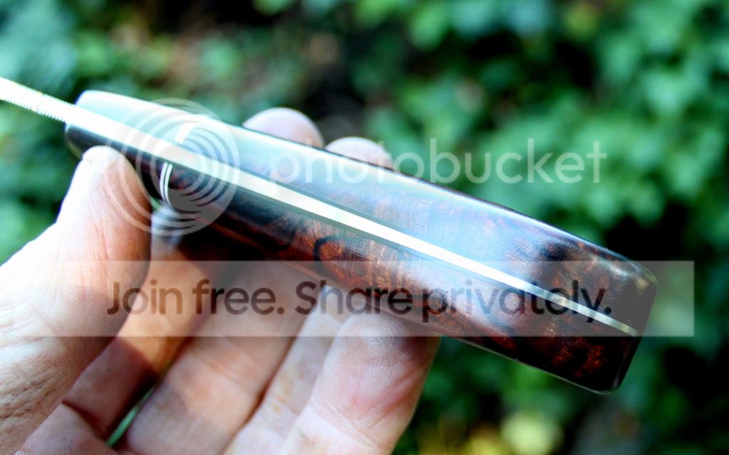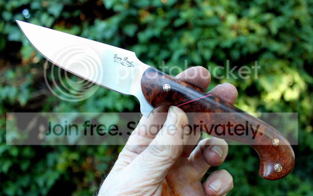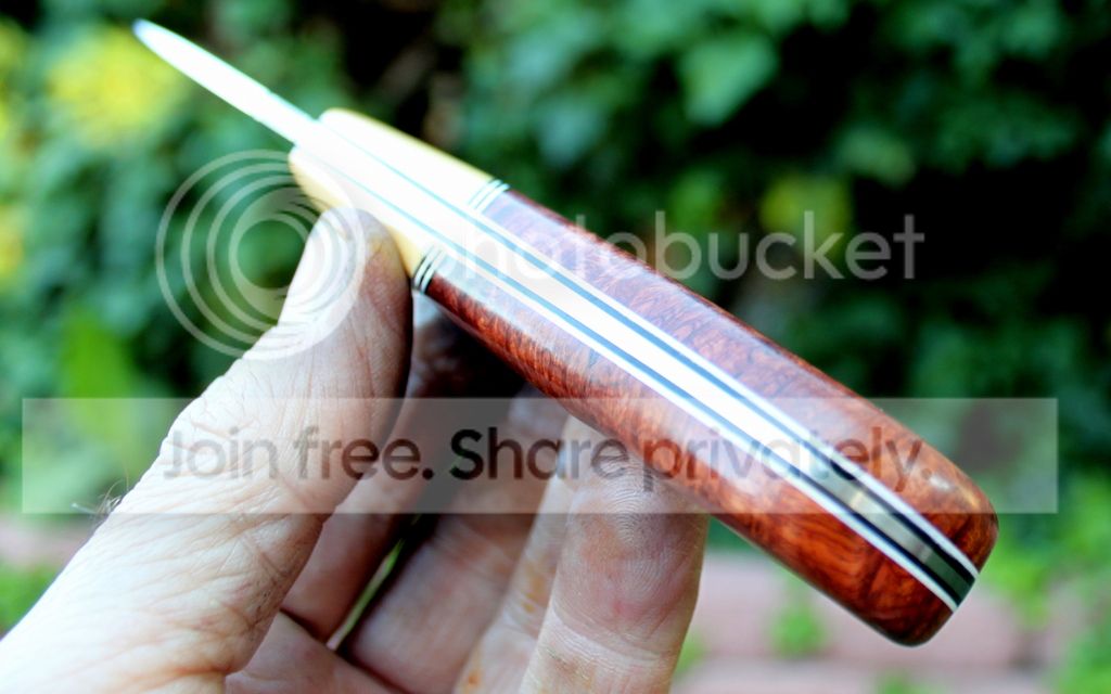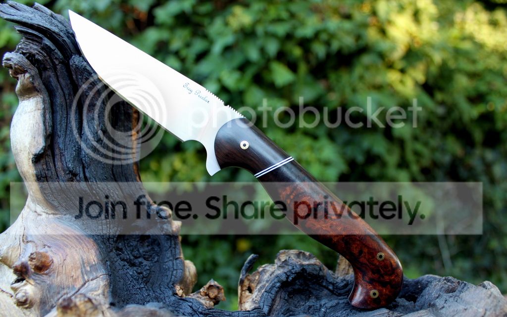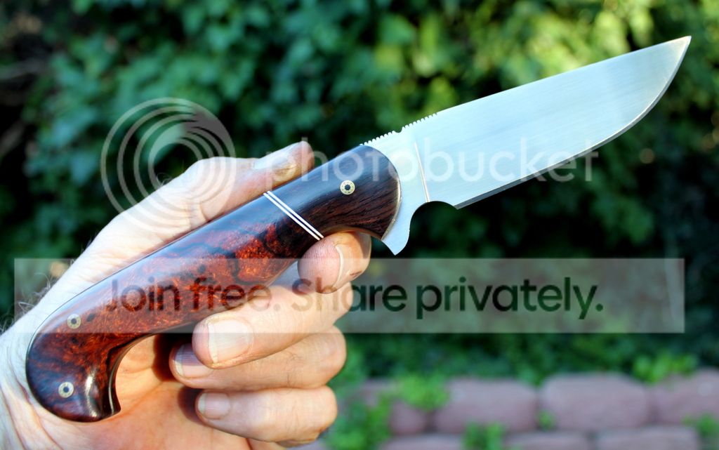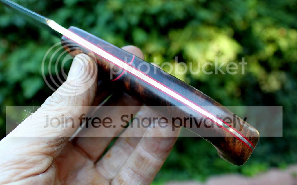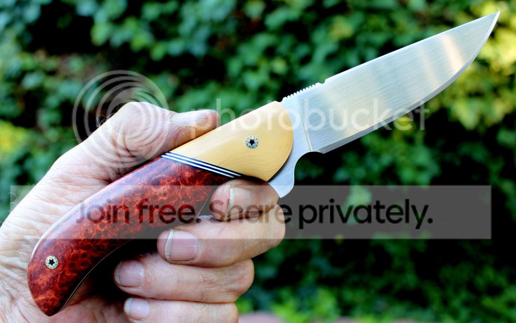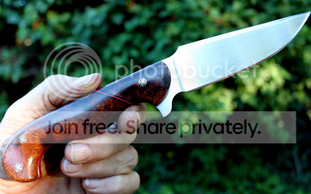 Handle Material: Desert Ironwood Burl with Red liners and Mosaic Pins