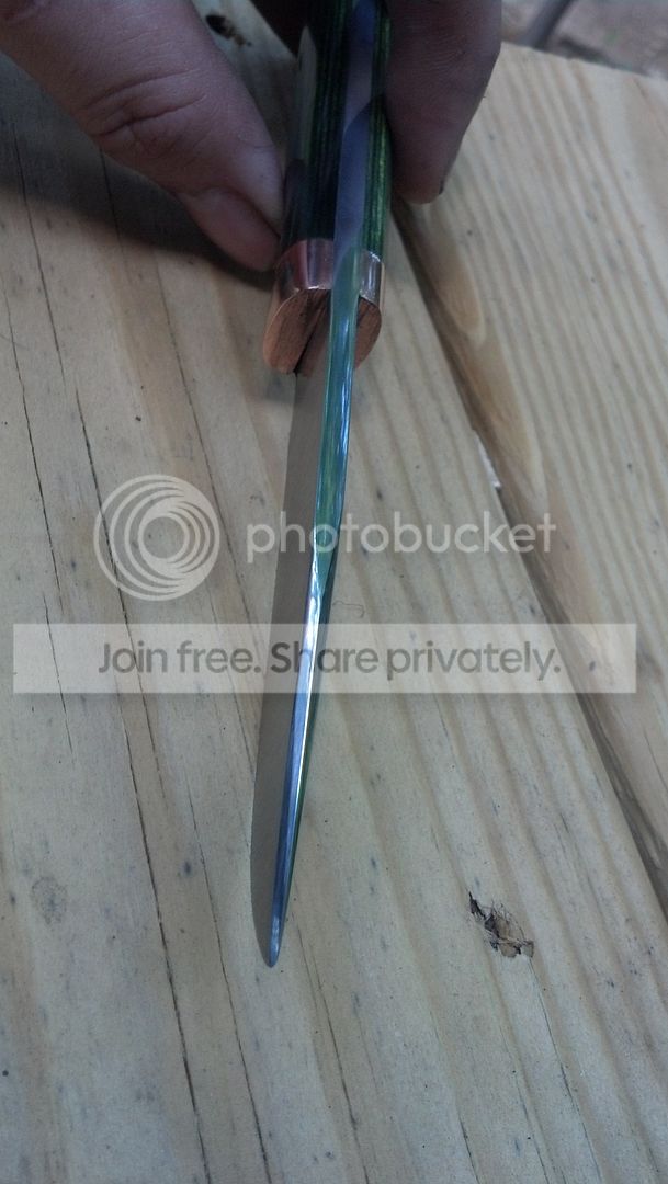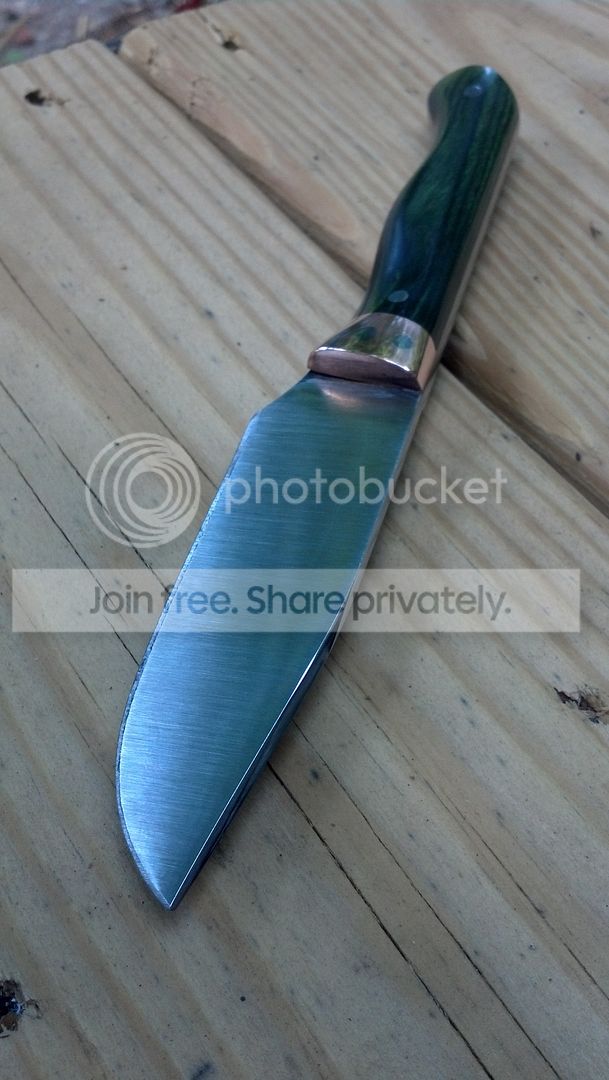 This is a hunting knife i made a while ago but did some clean up on yesterday. This was from when i first started knife making and there are some cosmetic blemishes but it is still a very comfortable and useful knife. I did a basic camp fire heat treat on this one.