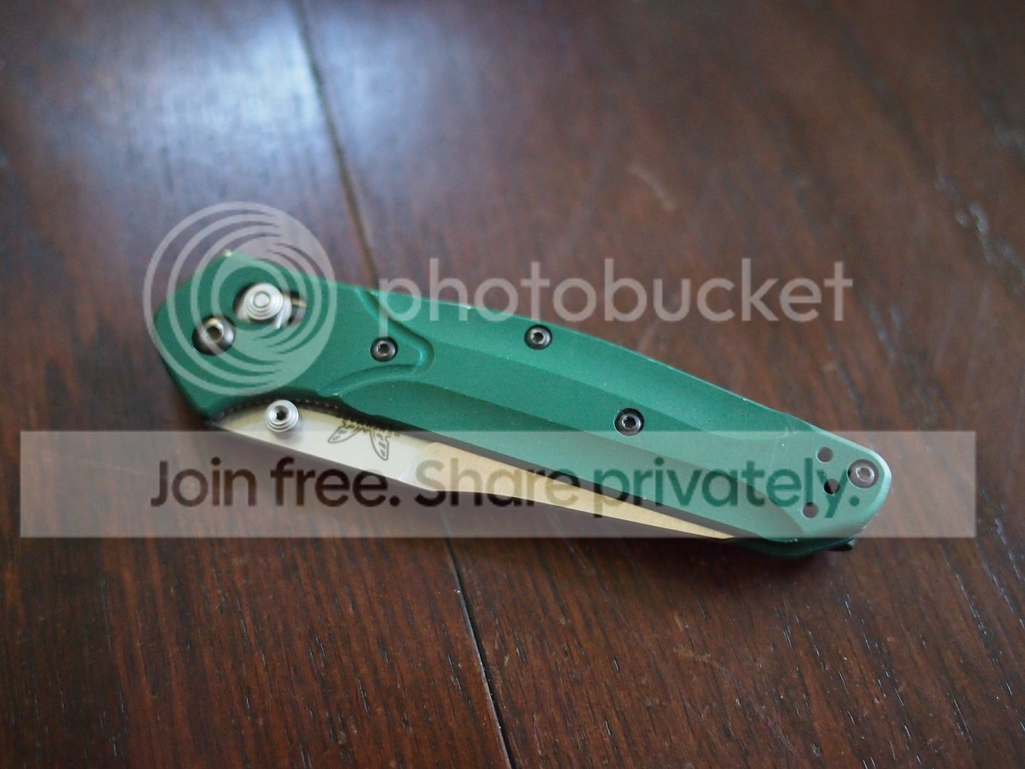 Great EDC blade, this one is half serrated, and has a Benchmade deep carry pocket clip installed (do not have original clip). I am original owner, and it saw moderate carry over about 6 months. Couple of nicks on the frame, but blade is flawless, still has factory edge. Have box it came in.