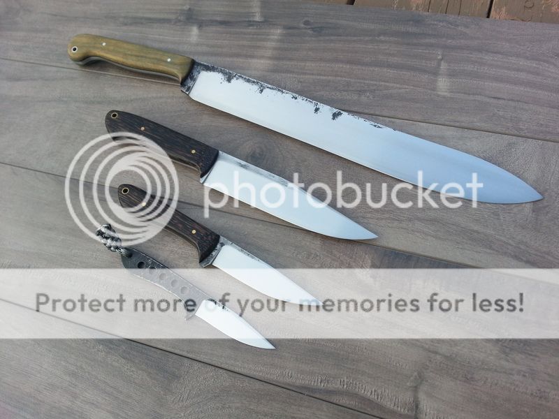 I have a batch of 4 knives up for sale today. All are made from 52100. See the pics and specs below!