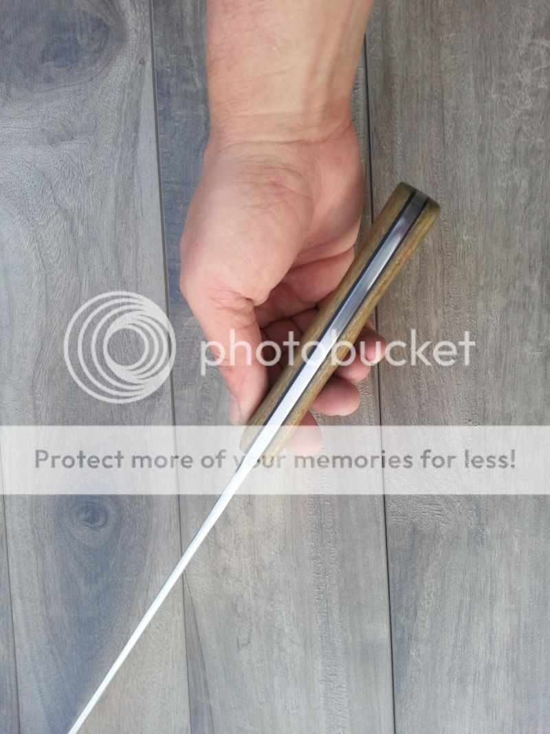 Handle: 5 3/4", lignum vitae with black G-10 liners