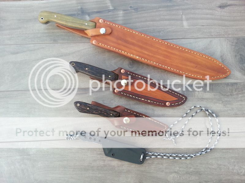 Sheath: 8/9oz vegi tanned leather, hand stitched