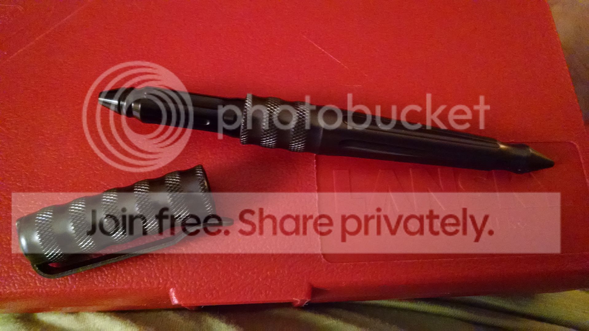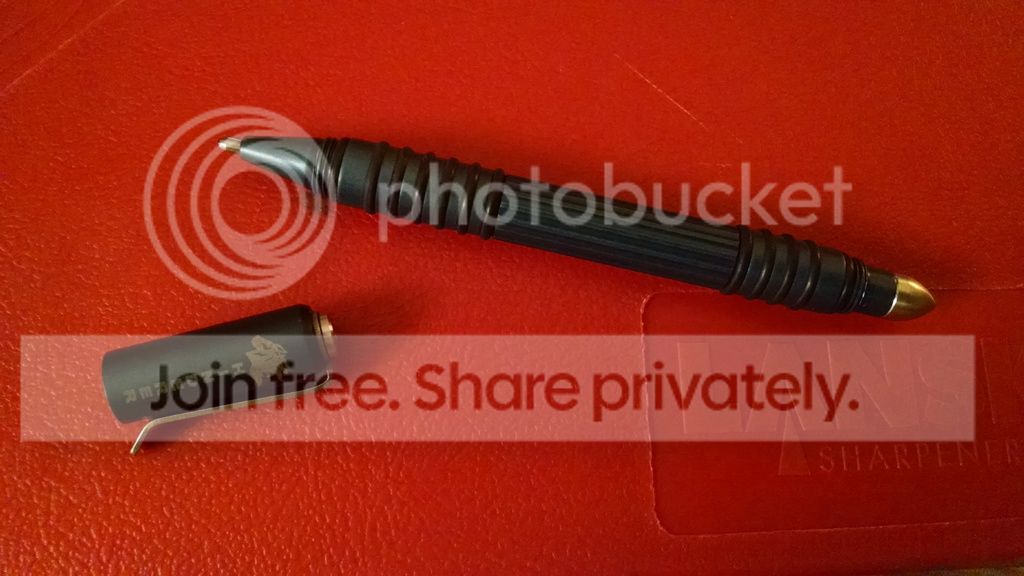 The first pen is a Benchmade 1100-2 in charcoal. The pen is very lightly used and has some tiny dings from a drop. Still nice condition and has a new refill. Not sure if I have the correct box for this one.