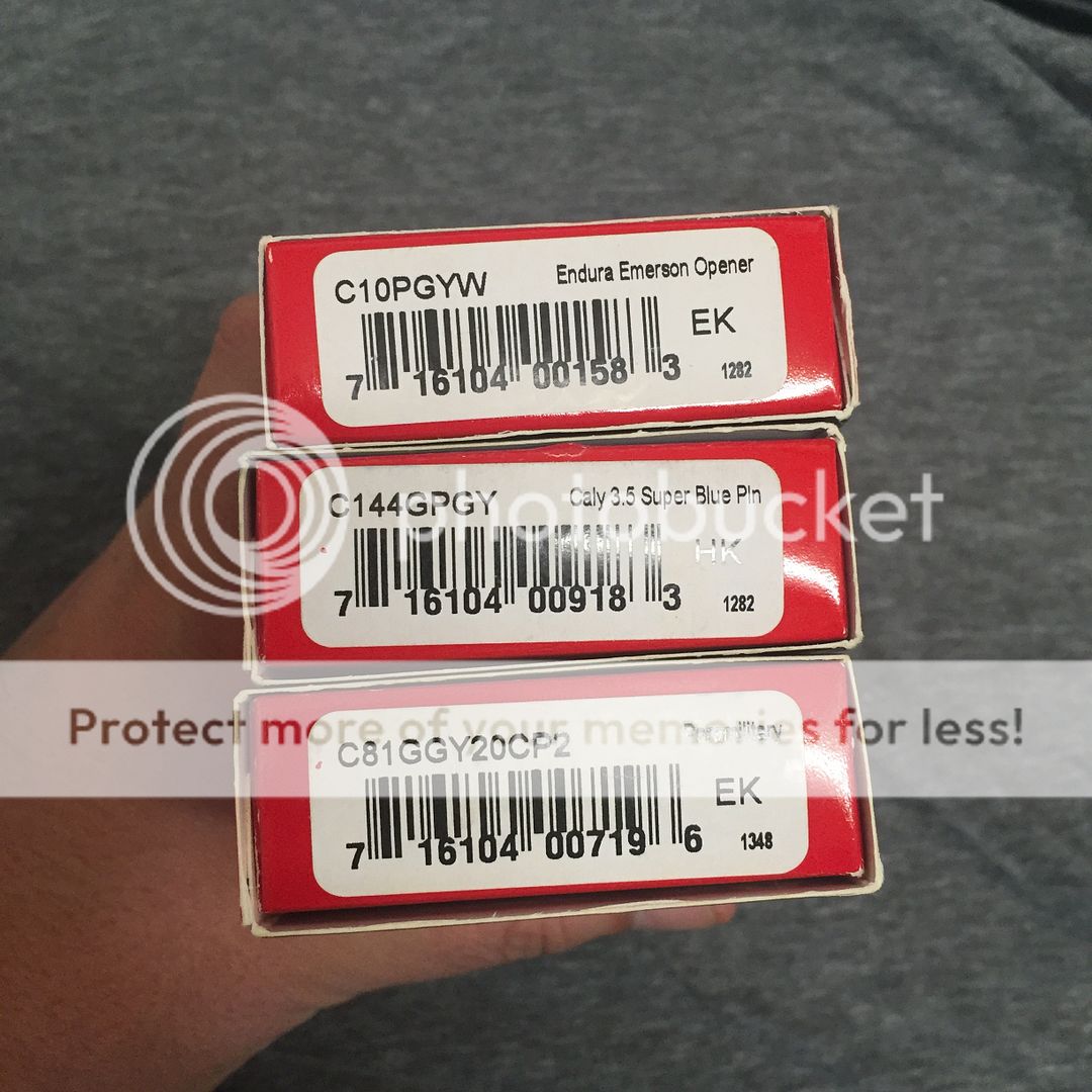 All knives come with original box. All have edge-u-cation sheet except reground waved endura