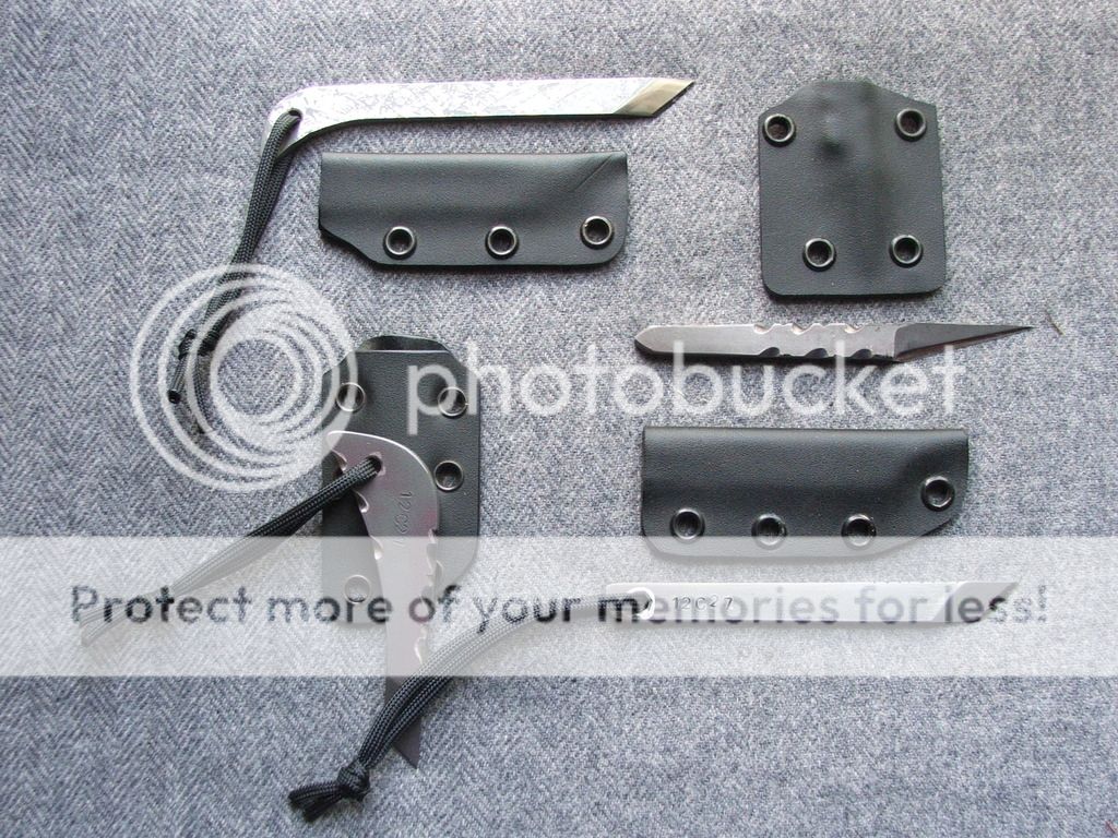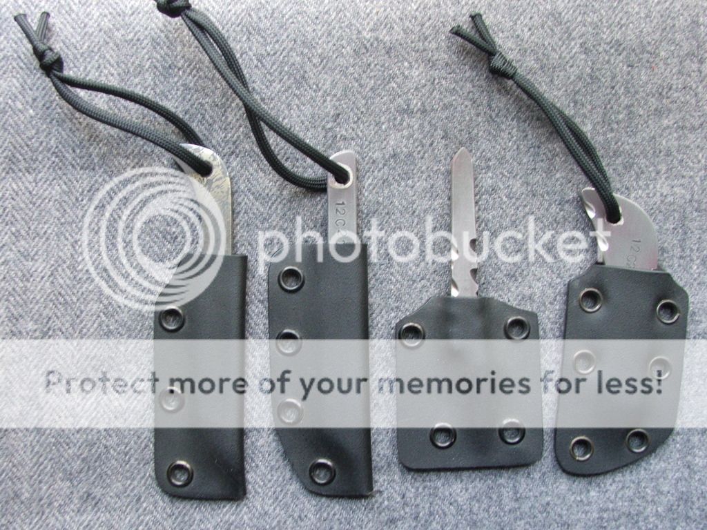 # 3 and 4 are 12C27, RC 58-60, subzero quench, black Kydex sheath