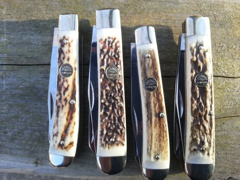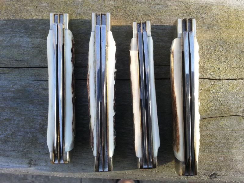 Hello all, I have 4 German Eyes that are approx 14 years old. All 4 are MINT, unused, unsharpened, etc. I have 4 boxes for them. There are 2 Large Trappers and 2 Medium trappers. All have awesome stag. I am selling all 4 for $250 shipped to your door. That's less than $63 each shipped! Paypal only...No Trades on these. Let me know if you have questions. PM or Email me and post here saying you did so.