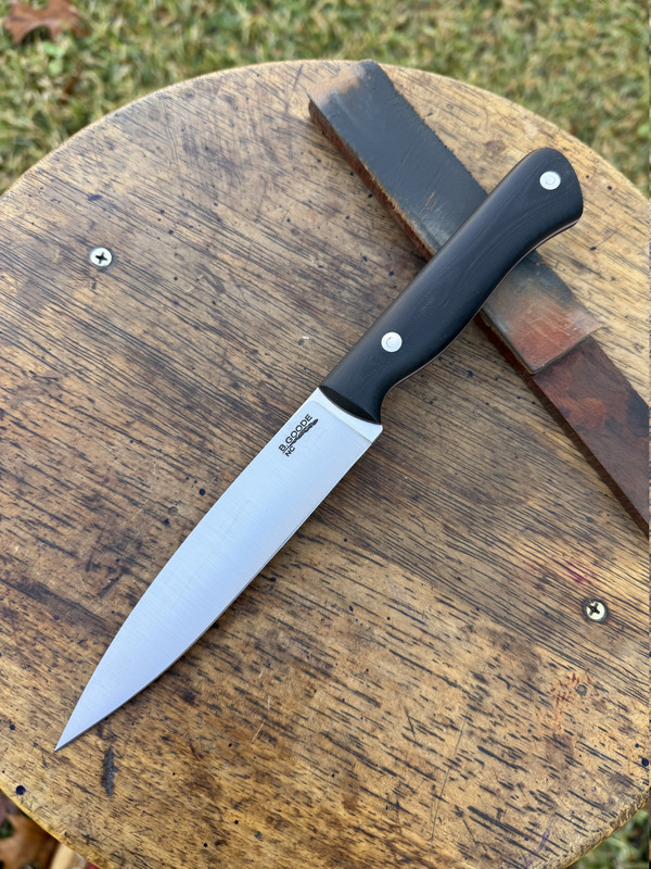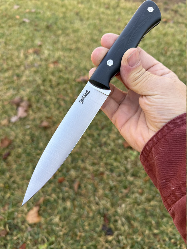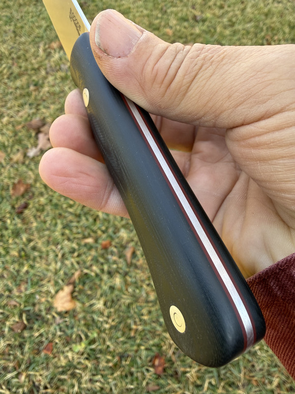 blgoode Knifemaker / Craftsman / Service Provider Joined Oct 3, 2003 Messages 7,177 Today at 4:37 PM #1 Got this one ready for the holidays. Owner wanted AEBL and g10 combination. Really a good looking setup. 5” blade in AEBL. .080 stock.