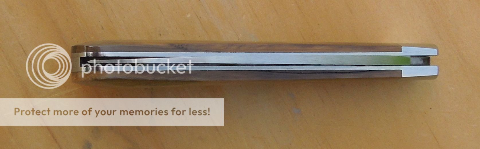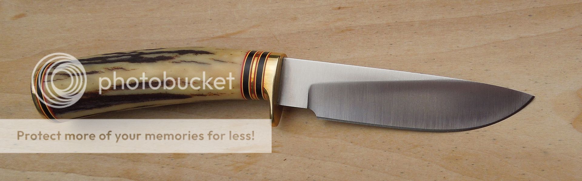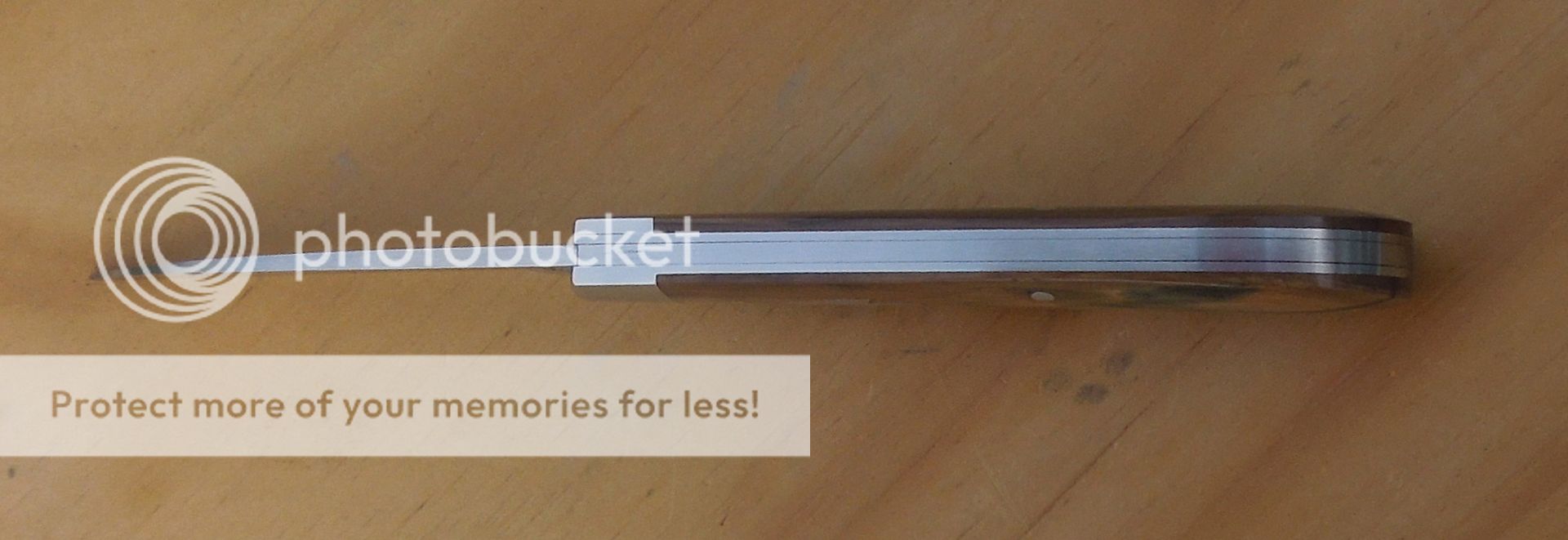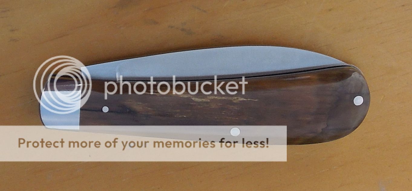 This is a trapper,or curved jack frame custom slipjoint folder by John Lloyd. It has really fantastic mammoth ivory & ss inlaid & pinned fancy arrowhead shield. Nice radiused ss bolster,ss mill relieved liners,ss pins. Very thin,deep hollow grind,wicked sharp. 52100 carbon blade & spring. Blade has a satin finish & a crescent nail pull,"punchable" , too. Outstanding fit & finish,and walk 'n' talk. The action is glass smooth,perfect medium 5+ snappy pull. Blade centers closed,spring is flush. John is just really doing fantastic work & here is a fine example. Closed it is 3-7/8" ,open,6-7/8". Blade is 3" with 2-3/4" cutting edge.