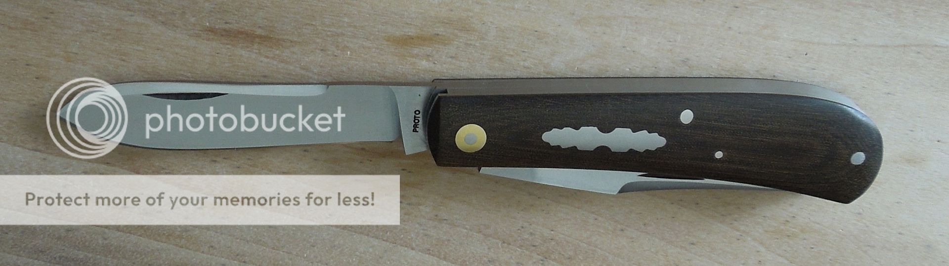 Menefee 2 blade trapper ,shadow,clip & semi skinner blades. 4" closed with green linen micarta and pinned NYK Co shield Marked Proto $550. Paypal , $530. U.S.P.S. M.O.