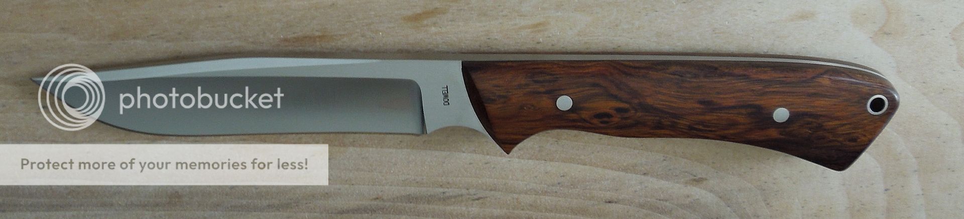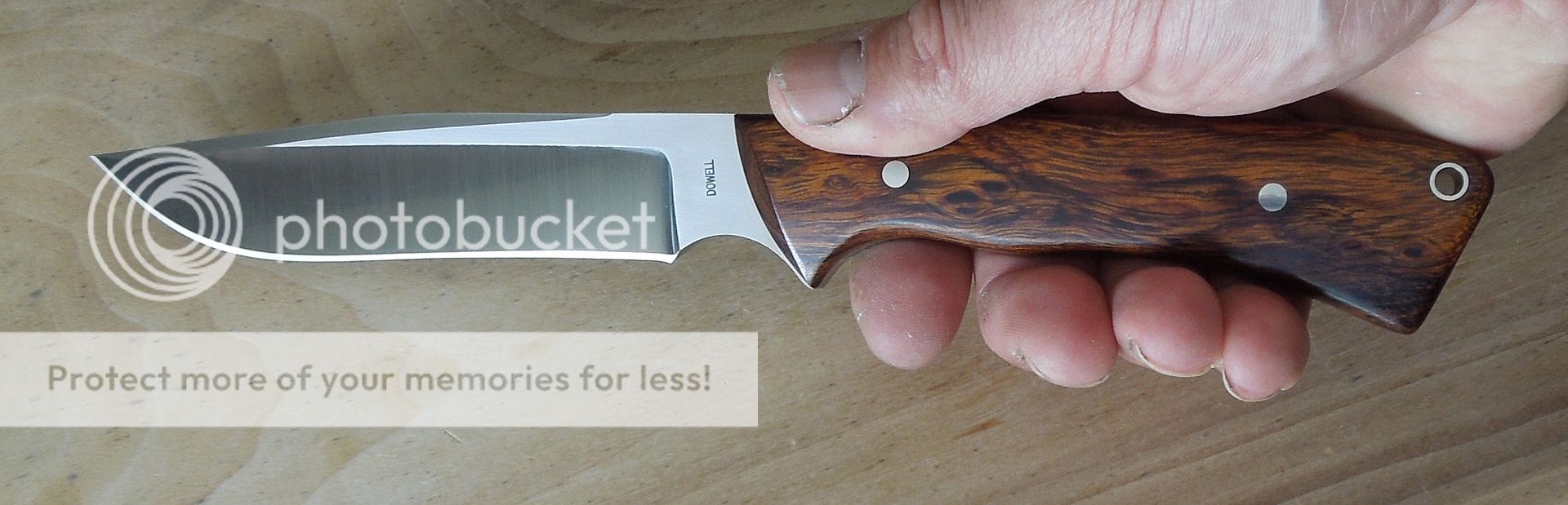 Bret Dowell Proto Camp knife,exhibition Ironwood,D-2 thick stock,tapered tang,fancy sheath,a must see.Very rare,probably won't be another. $485. Paypal , $465. U.S. Postal M.O.