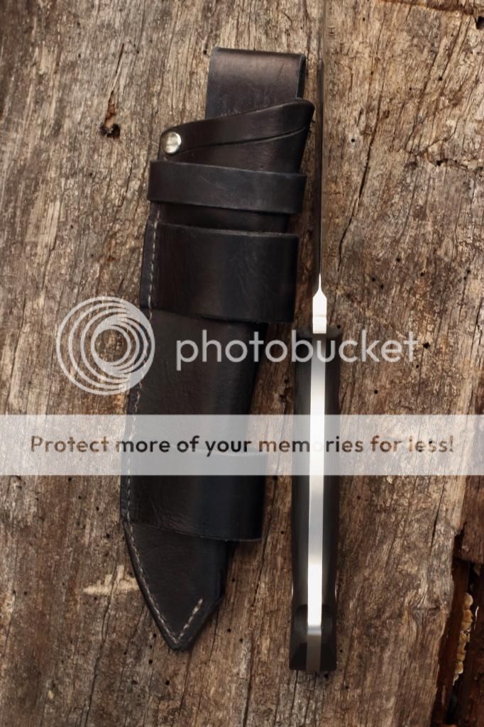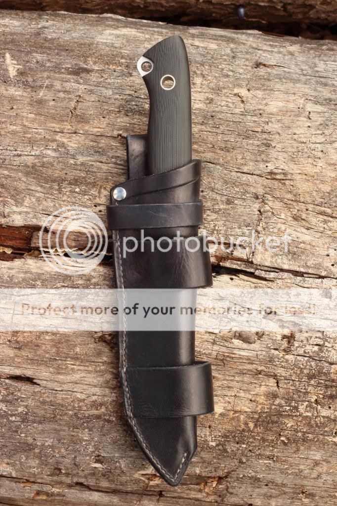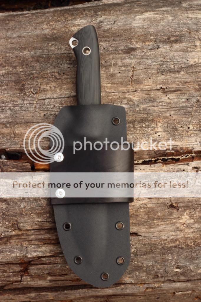 I have this 5.5 up for sale today. This one is in ATS34 with Black G-10 scales that have been bead blasted for a better grip. The blade has a 6oo grit satin finish. It comes with a Kydex and leather sheath. Thank you for looking, Jeff