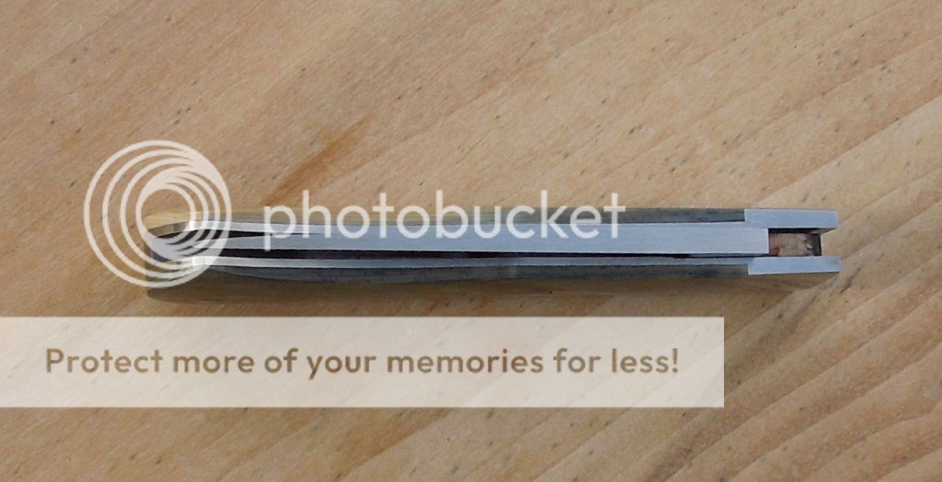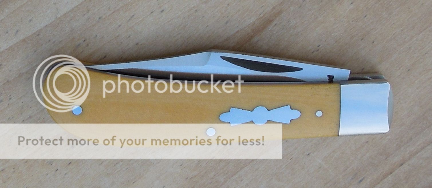 Beautiful antique ivory micarta with a ss pinned & inlaid propellar shield. SS pinched bolster,ss mill relieved liners,ss pins. Blade & spring is 52100 carbon. Hollow grind & razor sharp. Perfect smooth action,pull is a 5+,really nice fit & finish ,and walk 'n' talk. Blade centers nicely closed,spring is flush in all half stop positions.