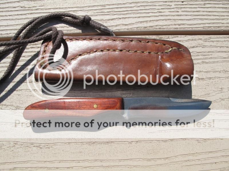 Neck knife- I do not remember the maker but bought it here at the exchange. Made from an old file.