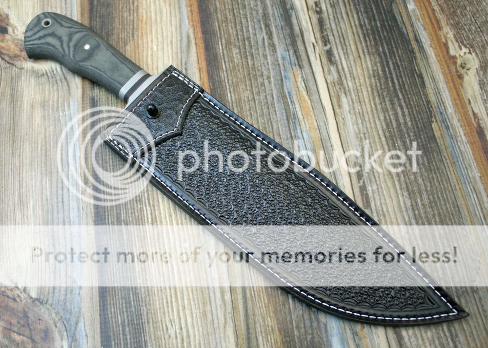 The sheath is 7-8oz hand tooled leather from Wickett and Craig. It has a retention stud that will hold it in your belt. The knife fits securely and draws nicely.