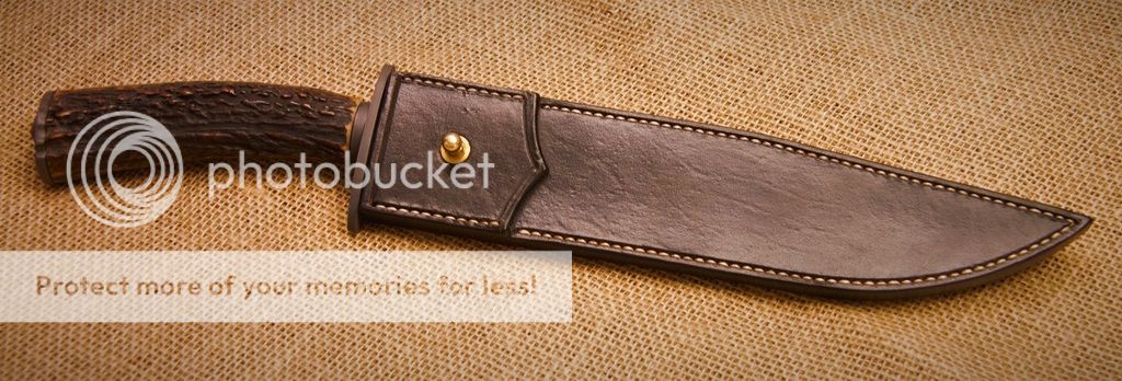 Sheath: Dark brown Oak double shoulder leather with a peened solid brass belt frog.