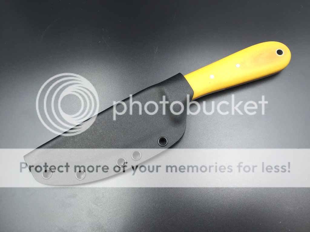- Kydex Sheath has excellent retention and works very well. Knife clicks into place. Holes for tek lok and spyderco G clip