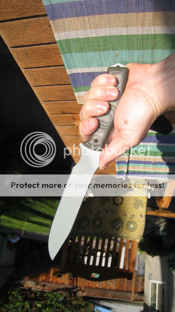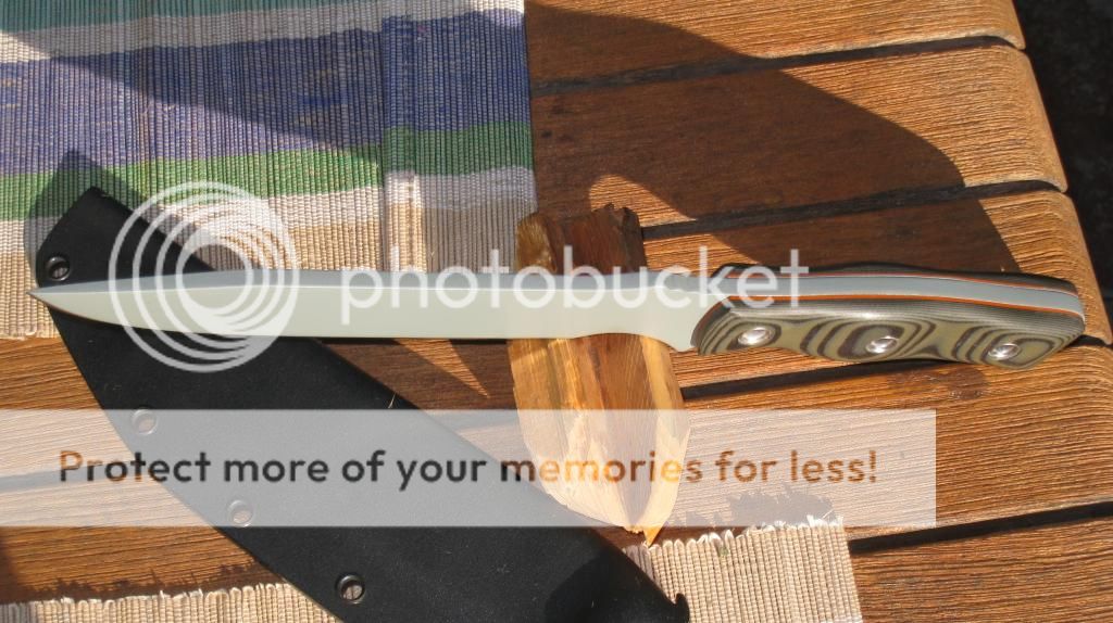 The steel is somewhat new to me, it got to the market very recently, you can read up on it from alphaknifesupply. It is similar to 3V by composition (8.5% chrome) but supposed to be even more tough. I tested the knife a bit before I duracoated it and was quite impressed by edge holding.