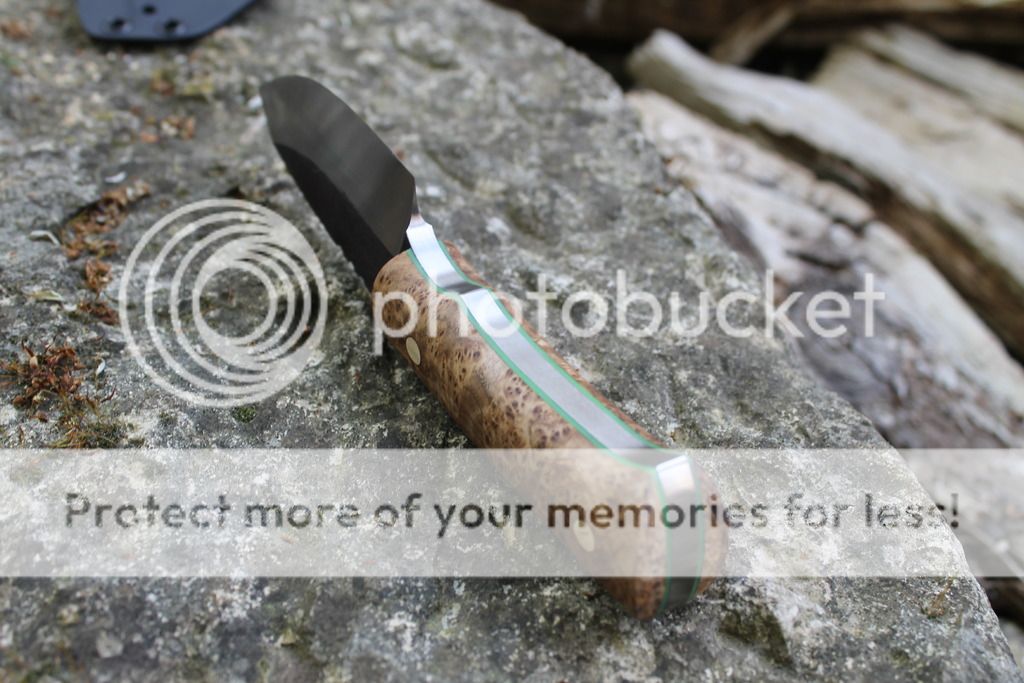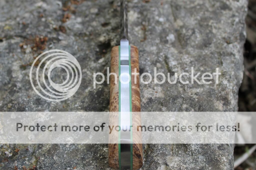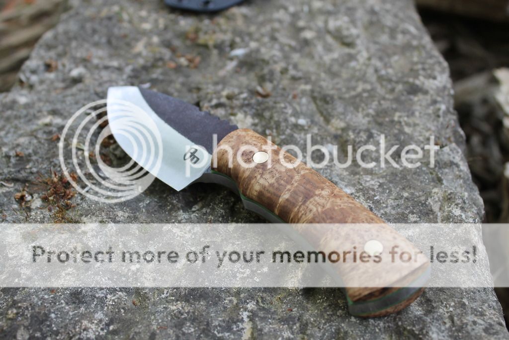 Handle: Stabilized black ash burl with green g10 liners