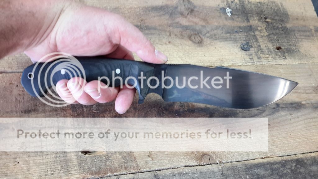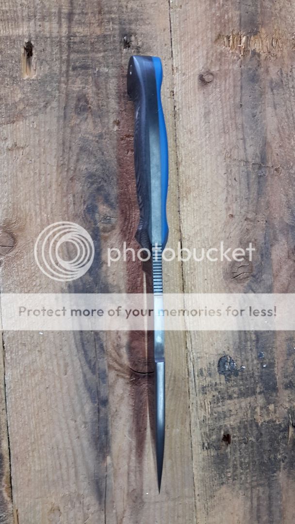 black linen micarta on one side, blue g10 on the other side. tried something different