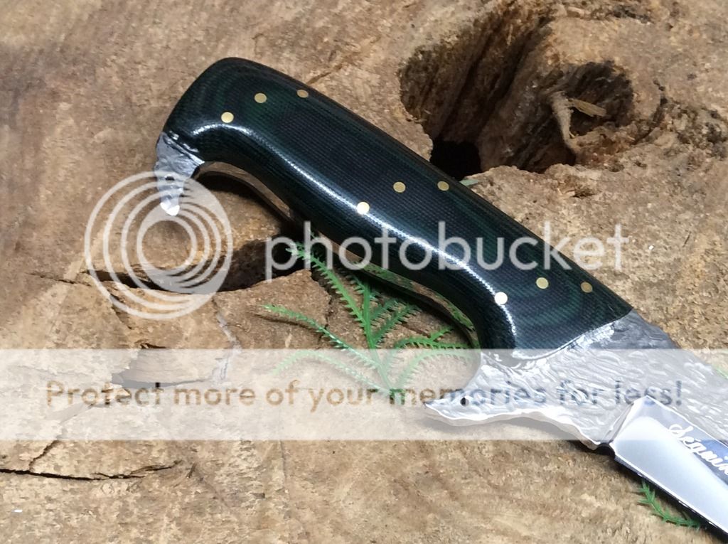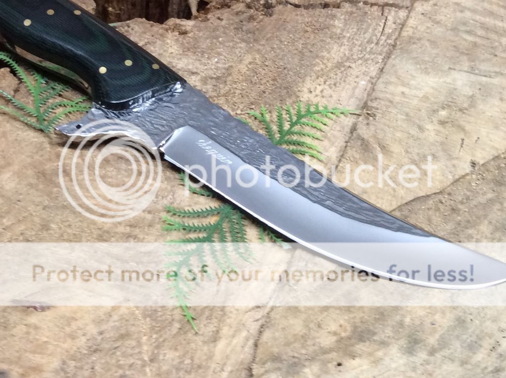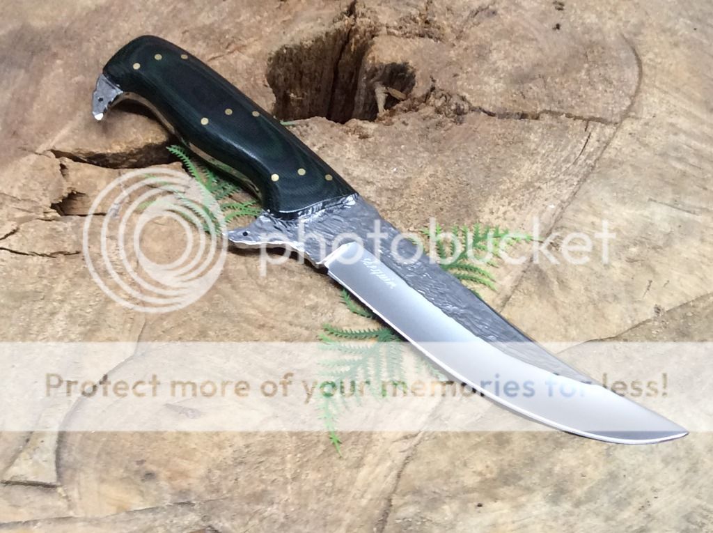 7 inch blade, miror polish blade with dexture design. 440-C. Rock weel 59. Creogenic treatement. Linen micarta handle, very nice grip protection, very easy to send by poste, pay by visa, master, paypal, money transfert. Ship in usa no problème Transport 25$ or you own transport,