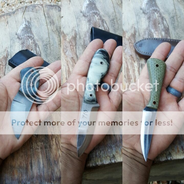Got a few small knives with leather sheaths for sale, shipping rates are USPS small flat rate box price, each picture has a price. no trades, I will need your email to send a Paypal invoice, Please send me a pm. Thanks for looking!