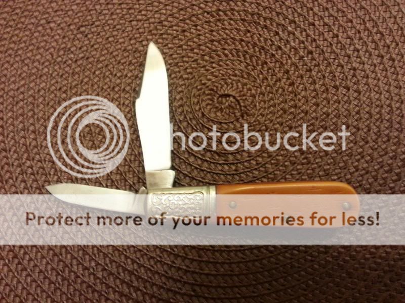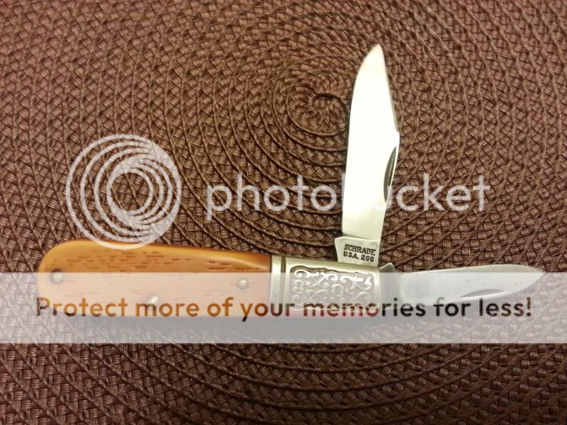 Not sure what else to say, but this is a 76-83 Schrade USA Barlow with Fancy Bolsters that is in REAL good shape for it's age. Not an imperfection in the scales. Blades look good and handle nice. I'll let the pics do the talking. $50 $45 shipped to your door. Paypal only please.(I eat the fees). First "I'll take it"...you can reply to thread, pm or email me.