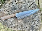Hello everyone, I’ve got a unique piece available today made out of Baker Forge double Damascus. The material is 1084+15n20 for the core and cladding separated by nickel and copper shims. The blade profile is one of my 8” western chef models with brown richlite handles. The blade has a deep etched finish that’s been polished for a more subtle contrast, the carbon steel blade will pick up a very unique look once it develops a patina in combination with the Damascus. Ships in a padded zipper pouch ready to be put to work. I have this one priced at $490 shipped in the US. Here’s a link for anyone interested, my website accepts cards, PayPal, and several other forms of payment.