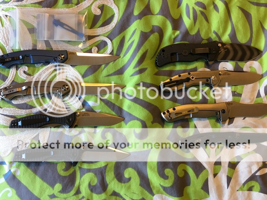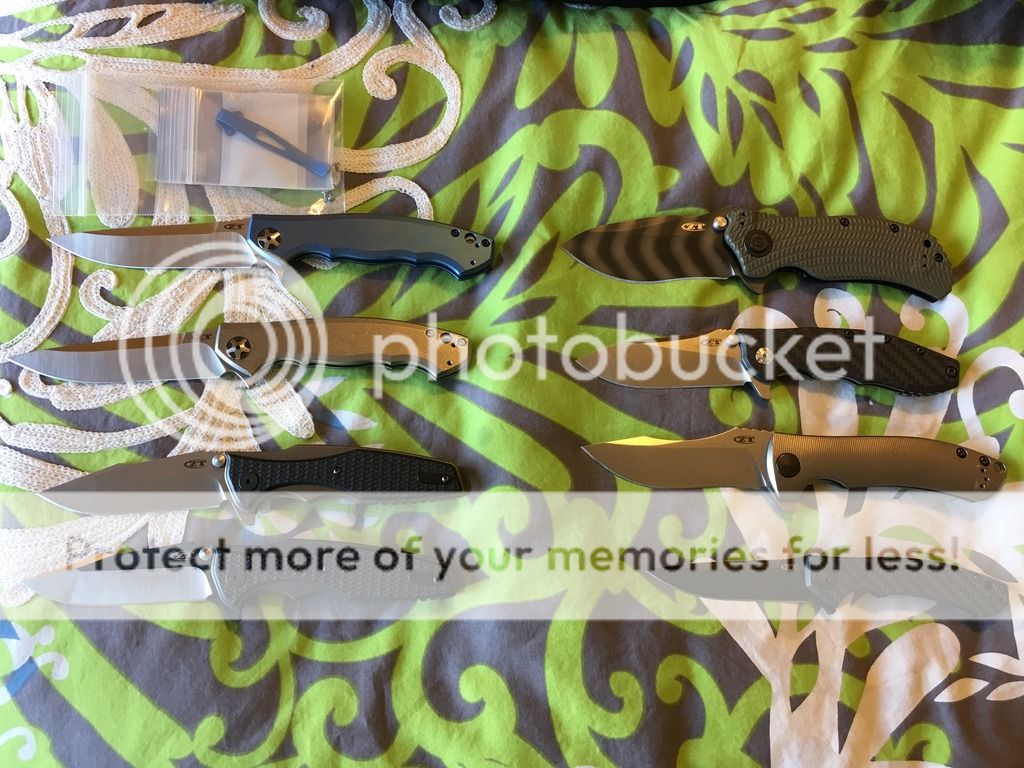 Unfortunately an unexpected expense is forcing me to sell off a lot of my ZT’s. Unless otherwise noted all are NIB or LNIB with perfect blade centering and lockup. All prices are OBO PayPal goods and services and includes fees and shipping. More photos available upon request. The only trades I’d be interested in would be a Ken Onion work sharp or a ZT0462. Can be reached by email at mkbaldree AT gmail DOT com. First I’ll take it gets the blade.