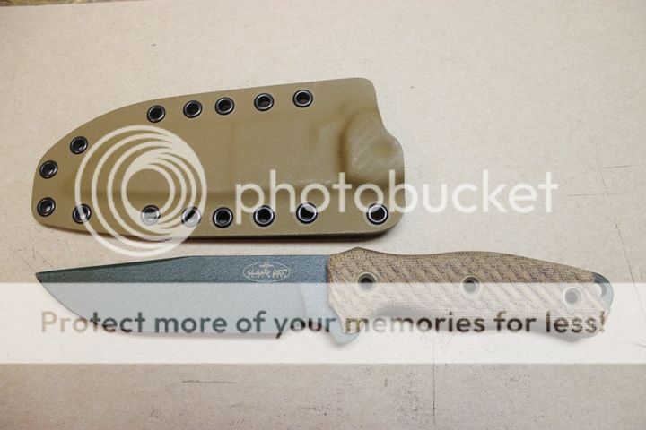2. Swamp Rat, First generation Ratmandu, Green blade, tan canvas handle, coyote Azwelke kydex sheath, slight rubbing from kydex, very sharp convex polished edge applied, otherwise unused .$200, Now $190, sold FB