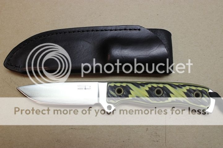 5. Busse SCABS, Small Choil Anorexic Boss Street, I think only three of these were offered for sale at BLADE several years ago, yellow and black G10, black leather sheath made specifically for this knife, I carried it at Blade 2 years ago but I don't think I've used it for anything ..$400, Sold S.L.