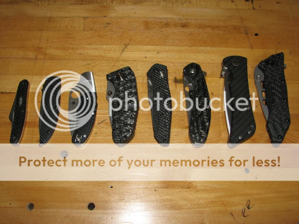 So being a Mechanical Engineer by trade, I have a natural interest in Materials Science. I have an affinity for carbon fiber left over from my mountain biking days, so when I discovered CF knife scales, I was hooked. I have many more knives in my collection, all users by the way, but this is what I have acquired thus far in CF. For the record, the Case Med. Stockman is the newest addition, and the Spyderco Caly 3 Damascus is the oldest one.