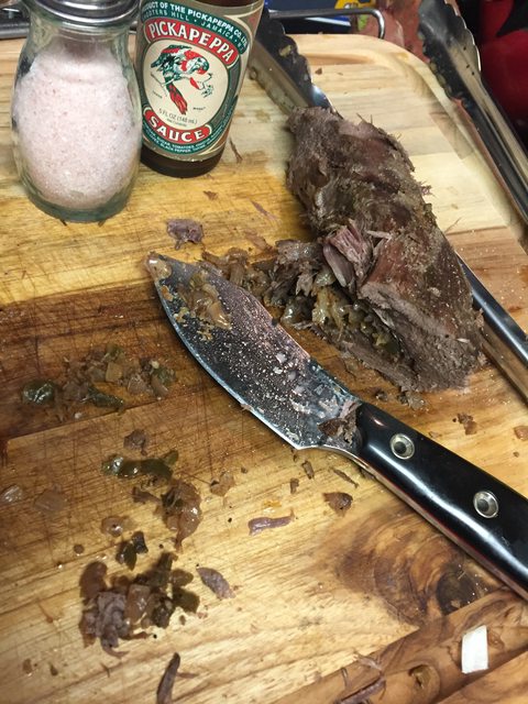 Well it was good, the stuffing was delicious (bell pepper onion and garlic). After I peeled the outer fatty/film layer off the tongue, I needed to add some seasoning back onto it. Tomorrow it will turn into tacos or breakfast mash-up...