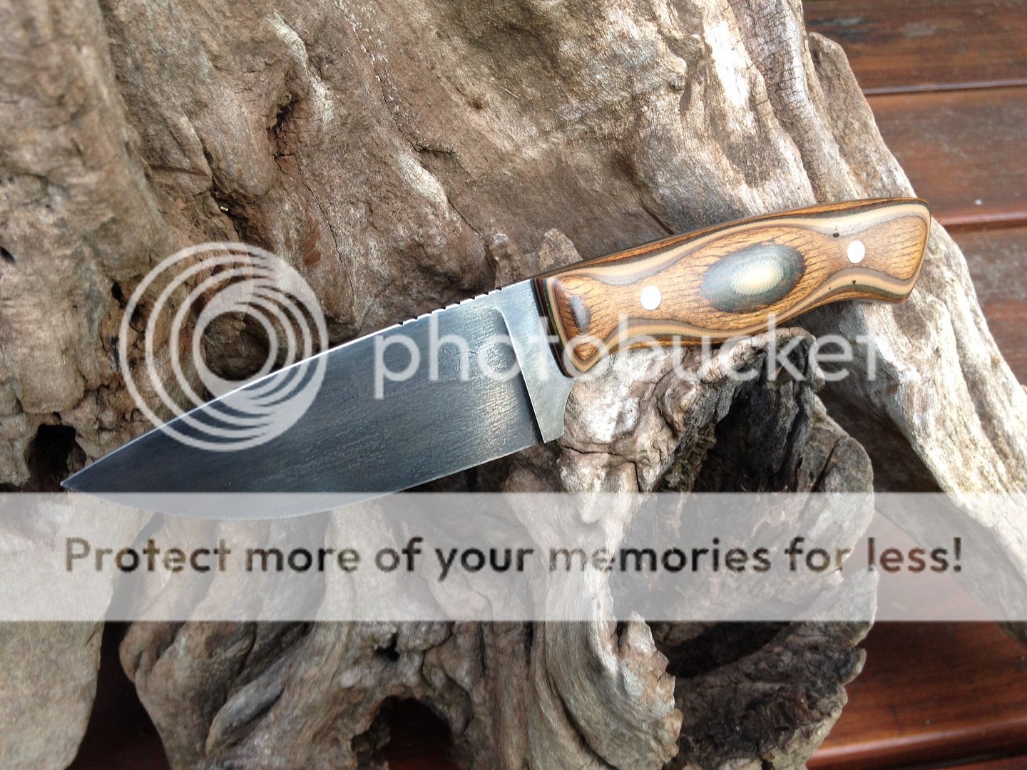 Beautiful Composite G-10 and Hardwood handle contoured nicely for a good hand feel