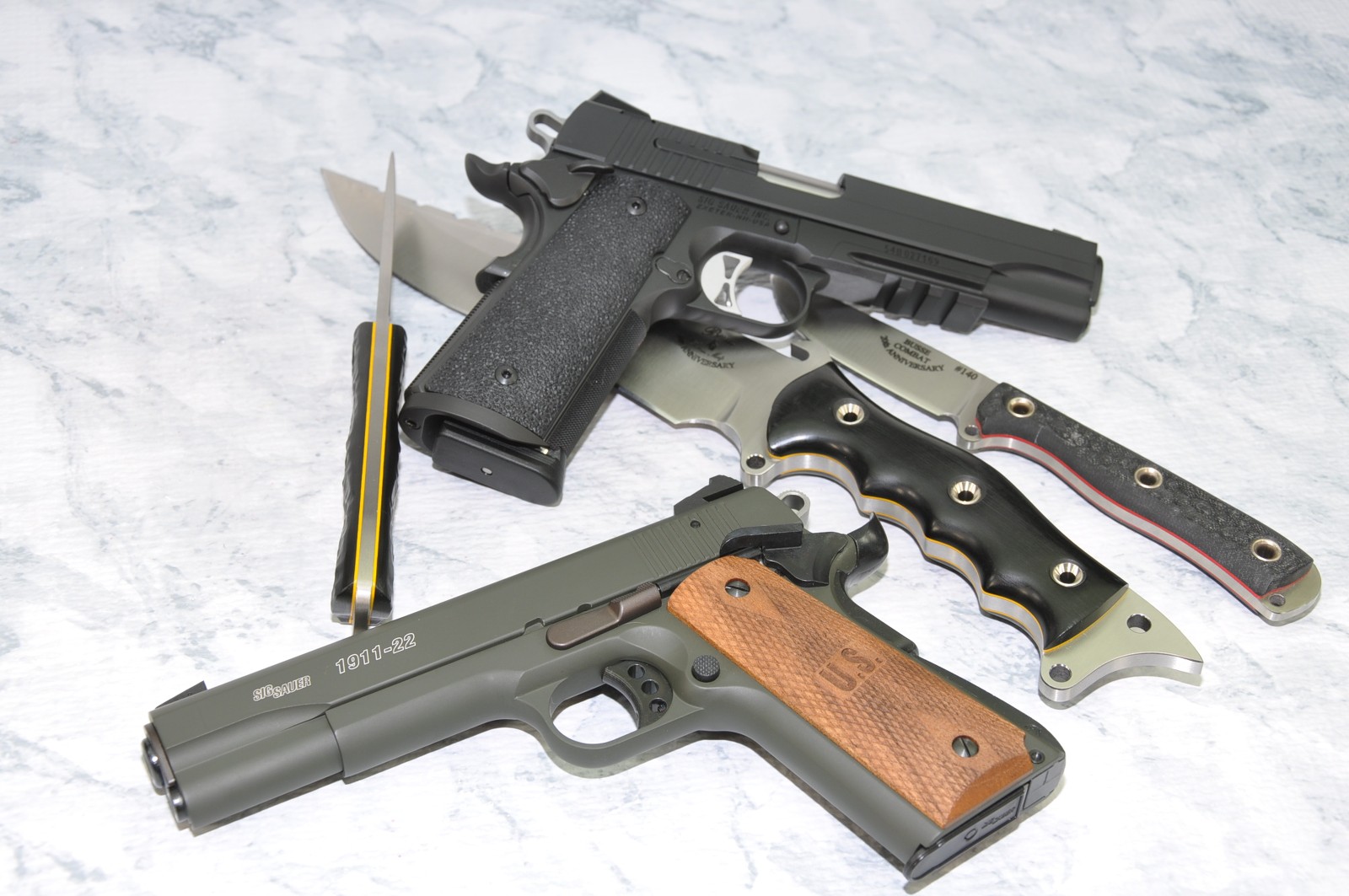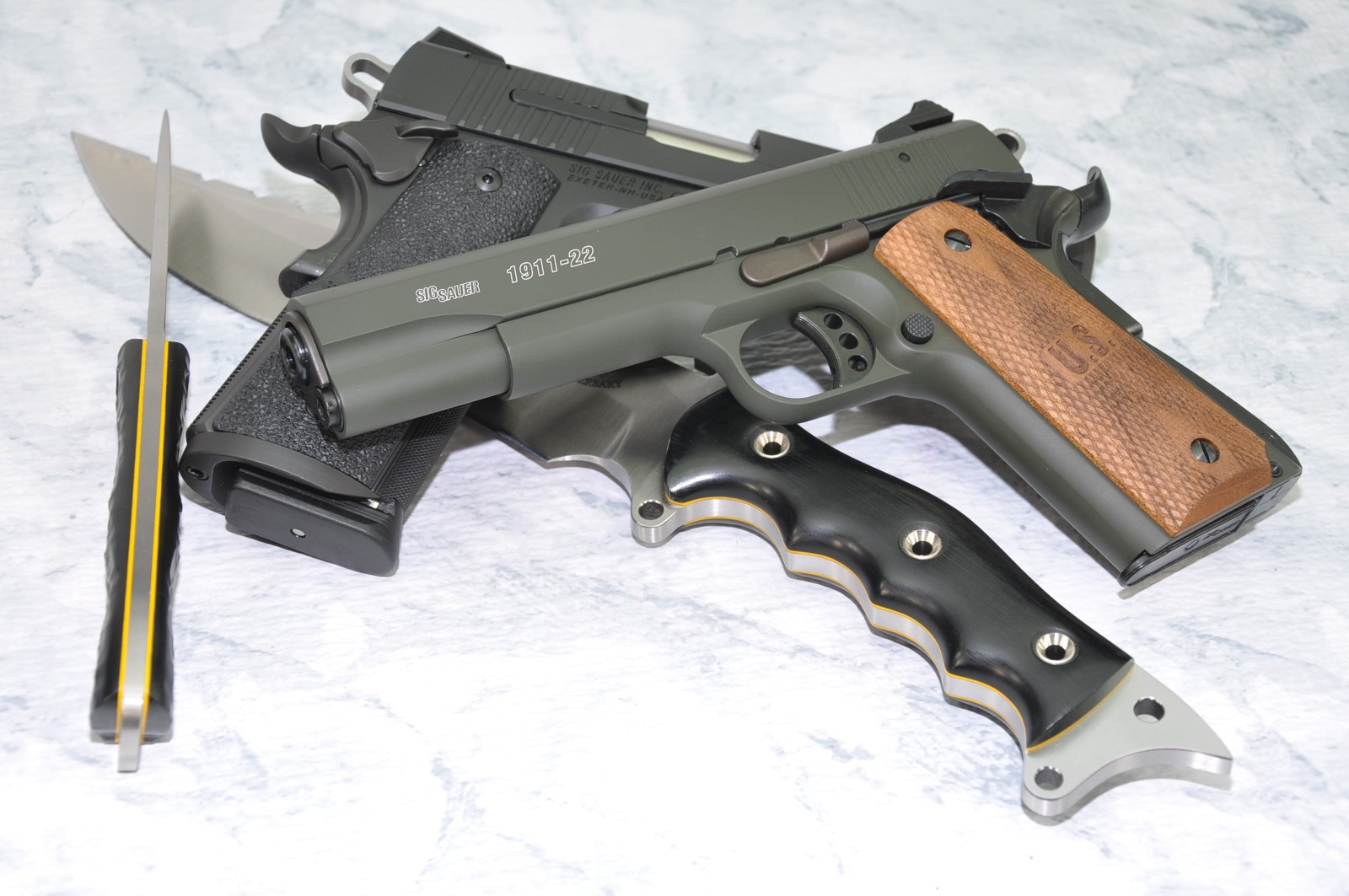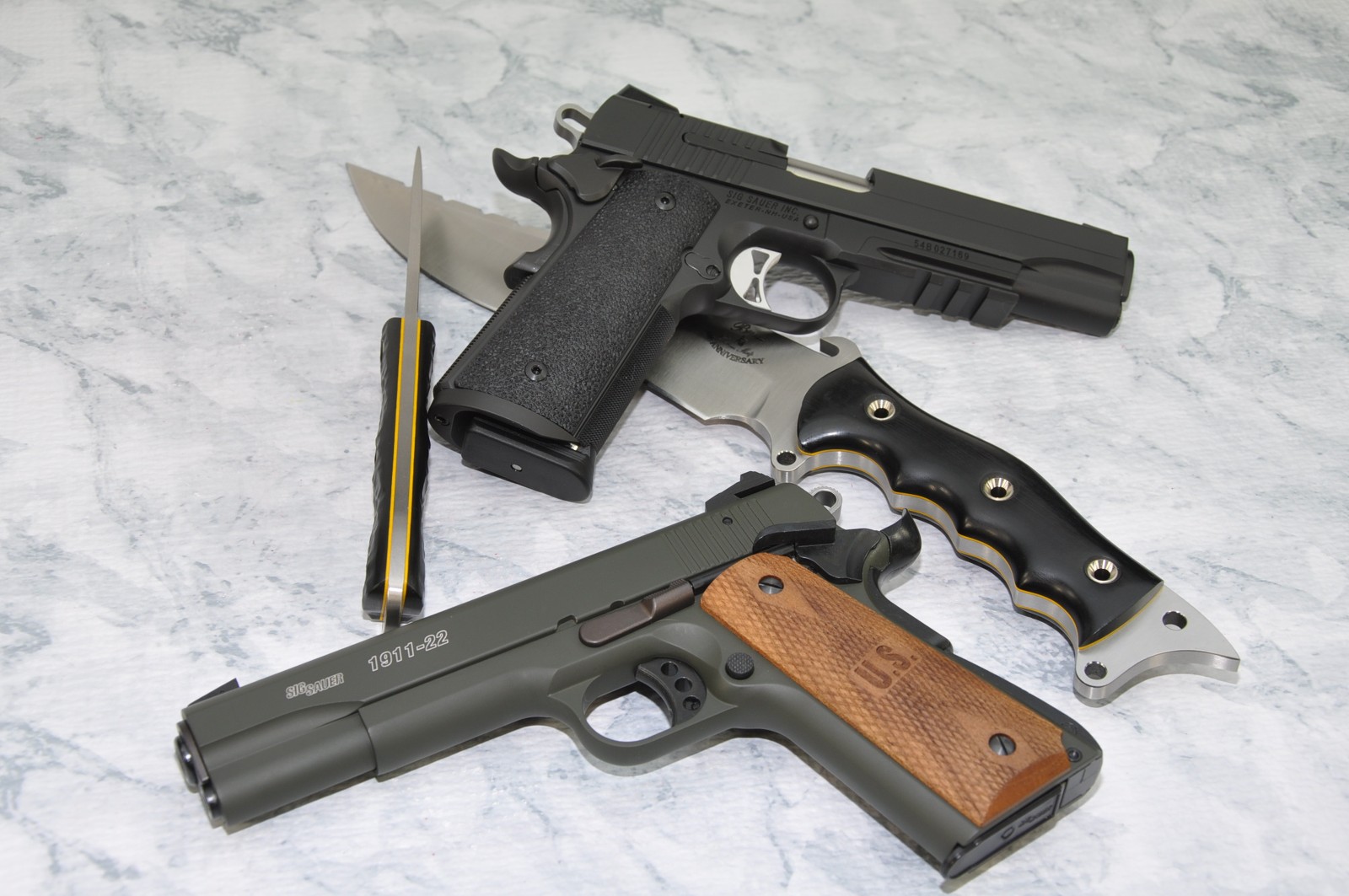 Buy one of 6 offered SIG 1911 style .45's and get a FREE yes, I said FREE 1911 .22 pistol.