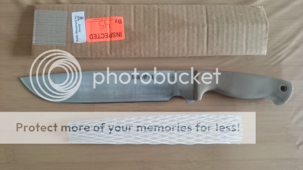 3.Swamp Rat Satin Battle Rat with full height grind convexed edge differentially hardened and tan reciprene-c handle. Un-used, however it has a few decarb spots throughout the blade. $350