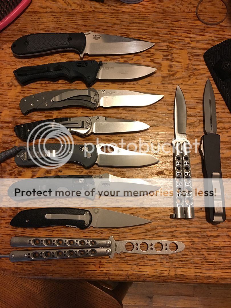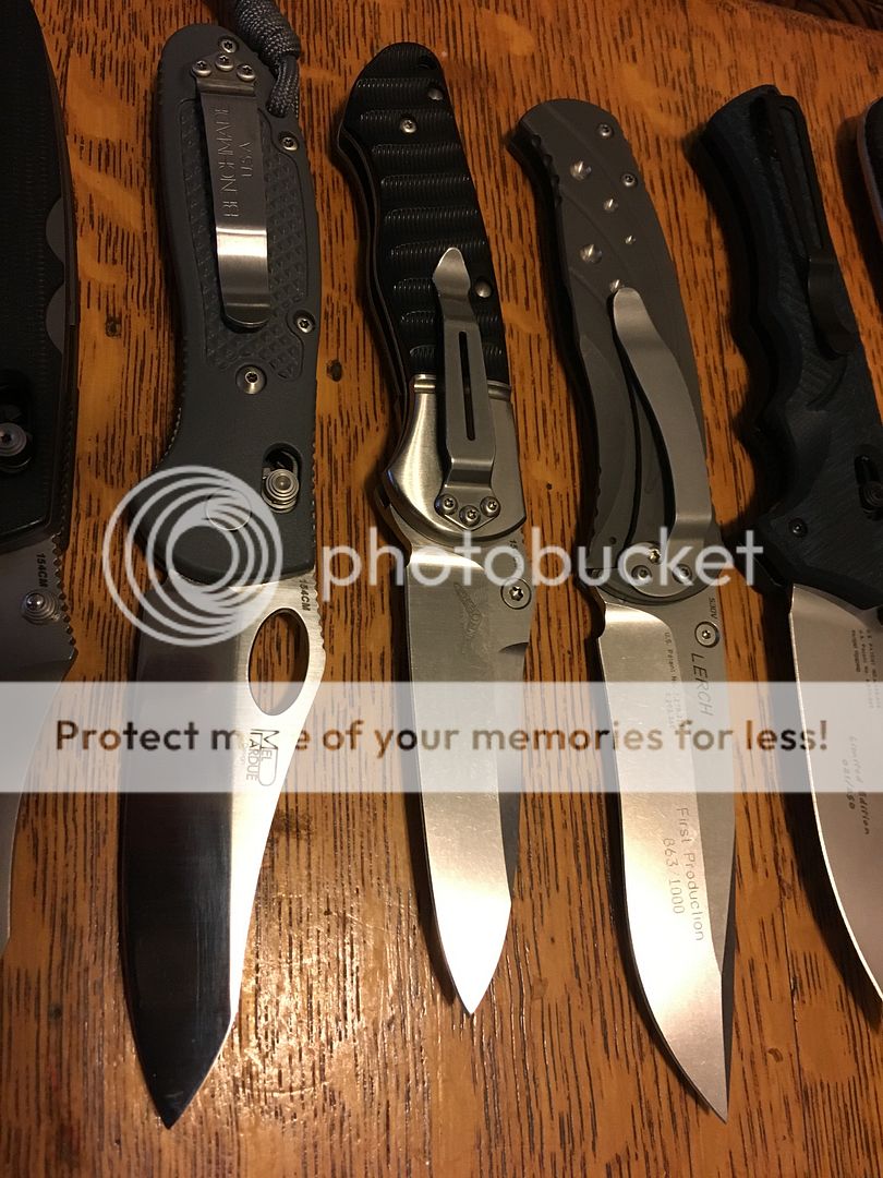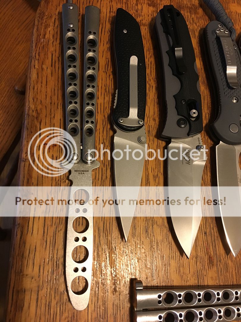 3-benchmade grip old style with oval thumb hole and flat grind. Like new with box 140.00