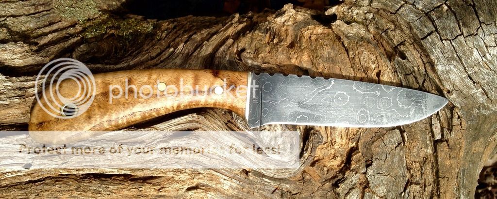 These two are both in 1084, the "Hunter" on the left is Spalted Maple, and the "Skinner" on the right is figured Maple. Local wood finished in Boiled Linseed oil and Tru-Oil.