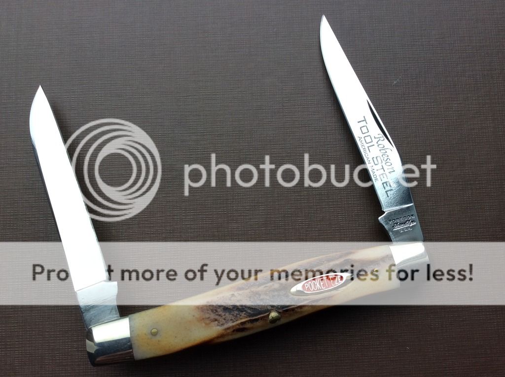 Robeson "PocketEzE" stag muskrat Never carried, never used. Comes with box. 3 7/8" closed. D2 steel, nice stag. Single spring.